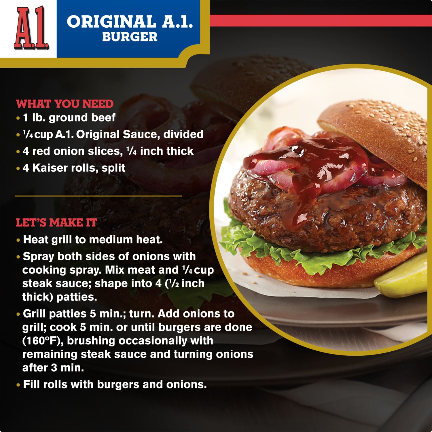 Transform your meals with the bold flavors of A1. Our Original Sauce is the perfect complement to burgers, steak, chicken, pork, vegetables and more! A1 Original Sauce combines tomato puree, crushed oranges, garlic and an intricate mix of spices for a zesty taste that goes with almost anything. Use our tangy sauce as a marinade, brush it on while grilling your preferred protein or pour it on your entrée for a boost of flavor. Ideal as a dipping sauce, you can also try adding our delicious sauce to your family’s recipes. Each 10-ounce glass bottle is resealable to ensure freshness. Whether you use it as a sauce or a marinade, A1 adds delicious flavor to all of your family favorites.