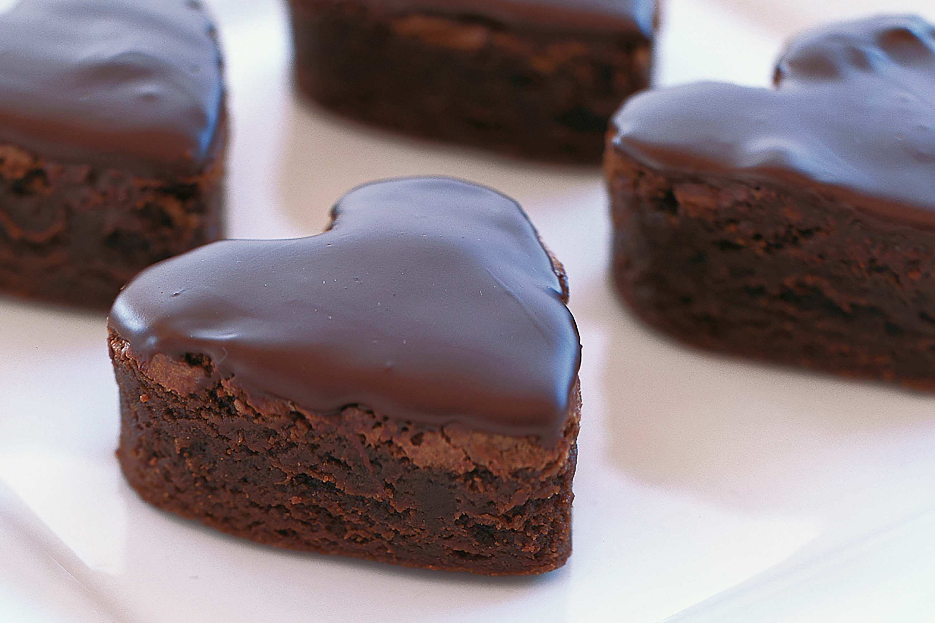 Melt semi-sweet chocolate as directed on package. Dip tops of brownie hearts, 1 at a time, into melted chocolate; place, dipped sides up, on plate. Refrigerate until chocolate glaze is firm.