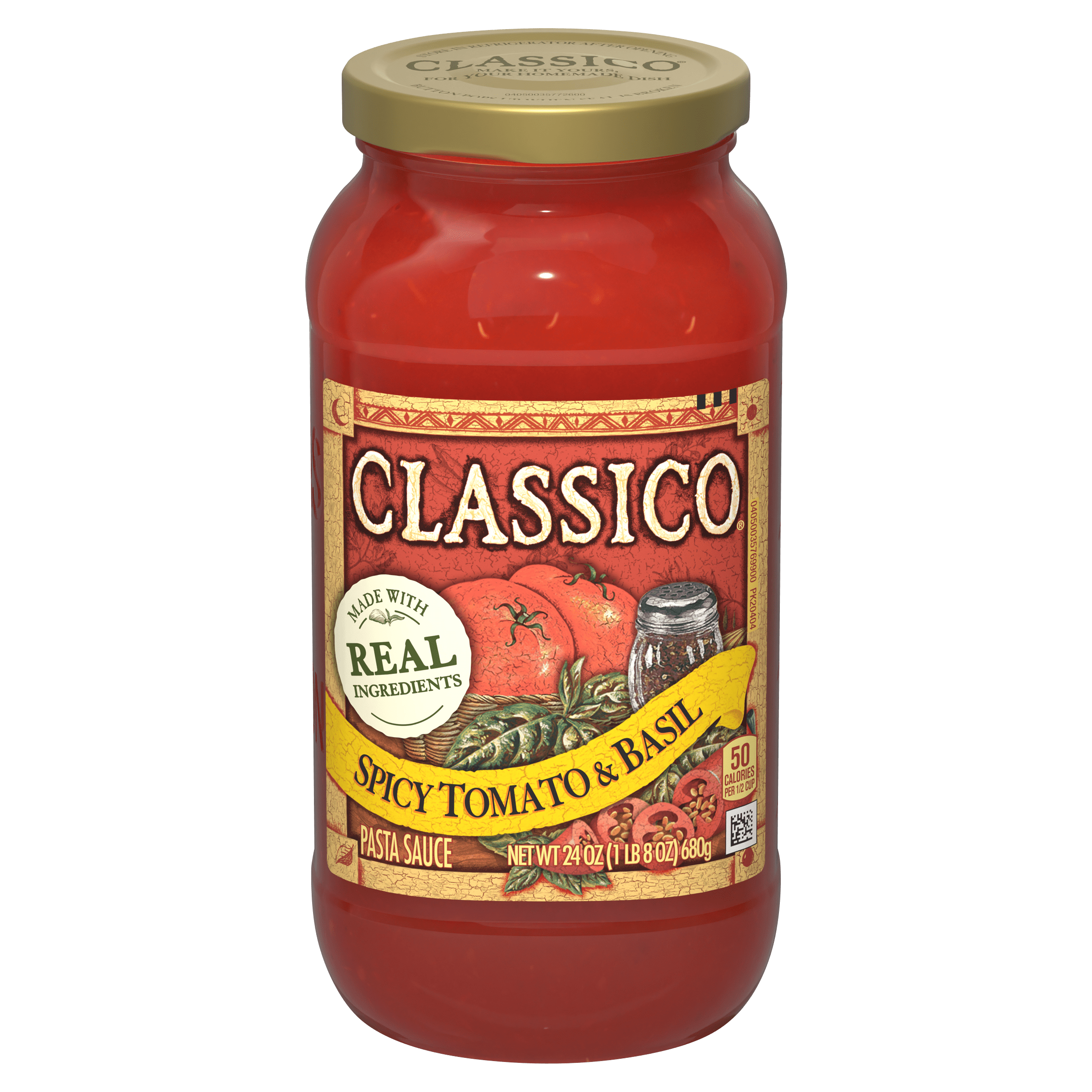 Fragrant basil and red-ripe tomatoes are blended with crushed red pepper in our lively, spirited sauce. Create your next homemade meal with Classico...