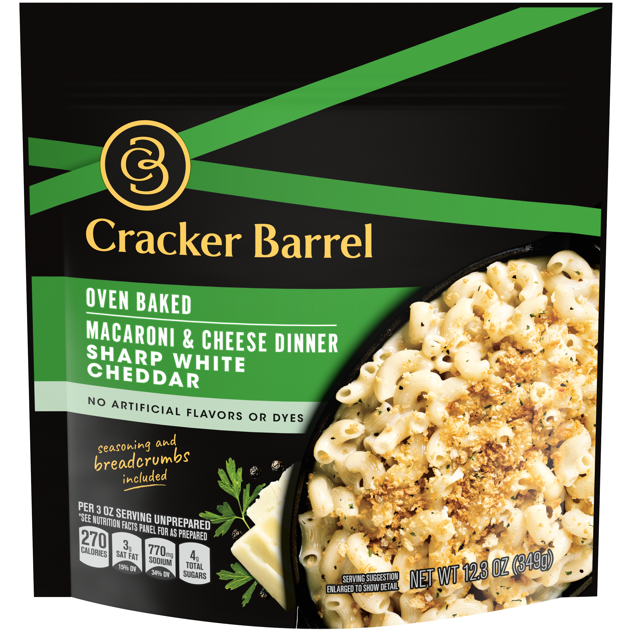 Enjoy the rich, bold and irresistible taste of our Cracker Barrel Sharp White Cheddar Oven Baked Macaroni & Cheese Dinner. Our mac and cheese comes...