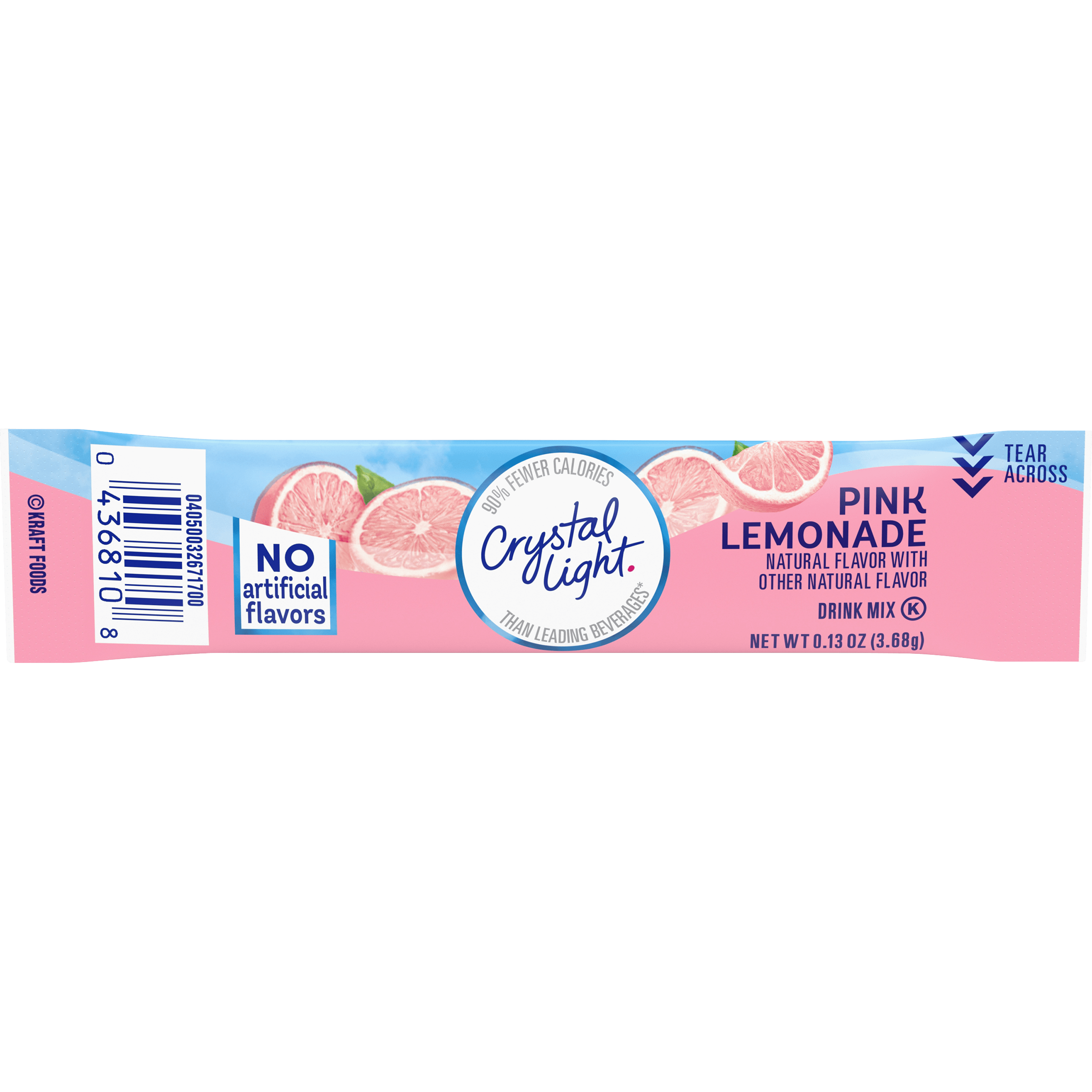 Crystal Light Naturally Flavored Pink Lemonade On-The-Go Powdered Drink Mix is a refreshing beverage you can enjoy at any time of day. With zero grams of sugar and 10 calories per packet, Crystal Light is a sweet alternative to juice and soda and has 90 percent fewer calories than leading beverages (this product 10 calories, leading beverages 70 calories), so you don't have to choose between taste and calories. It's also made with natural flavors for a refreshingly smooth taste. Each 0.13 ounce individual packet in this 10 count box of powdered lemonade drink mix is perfectly portioned to flavor a bottle of water with Crystal Light sugar free lemonade, so you can enjoy the flavor on the go. Simply mix one lemonade packet with a bottle or glass of water, shake or stir, and enjoy! All the flavor and only 10 calories, just the way you like it.