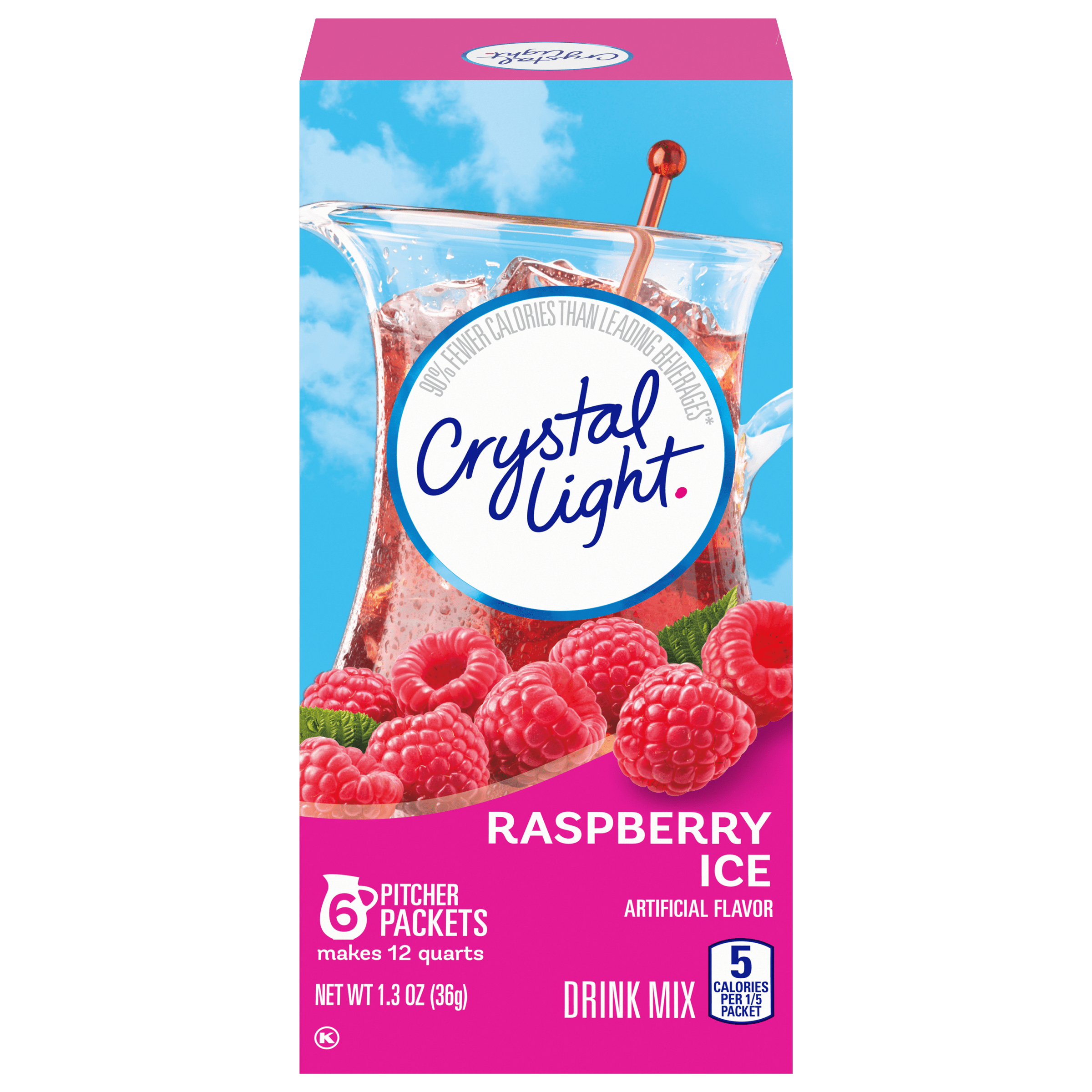 Crystal Light Raspberry Ice Powdered Drink Mix is a deliciously fruity drink with a raspberry flavor you can enjoy anywhere. With zero grams of sugar and 5 calories per serving, Crystal Light is a sweet alternative to juice and soda and has 90 percent fewer calories than leading beverages (this product 5 calories, leading beverages 70 calories), so you dont have to choose between taste and calories. The four pitcher packs in this 0.87 ounce container come perfectly portioned, so you can mix up a pitcher of Crystal Light powdered fruit drink mix easily and keep it on hand in the fridge. All the flavor and only 5 calories per serving... just the way you like it.