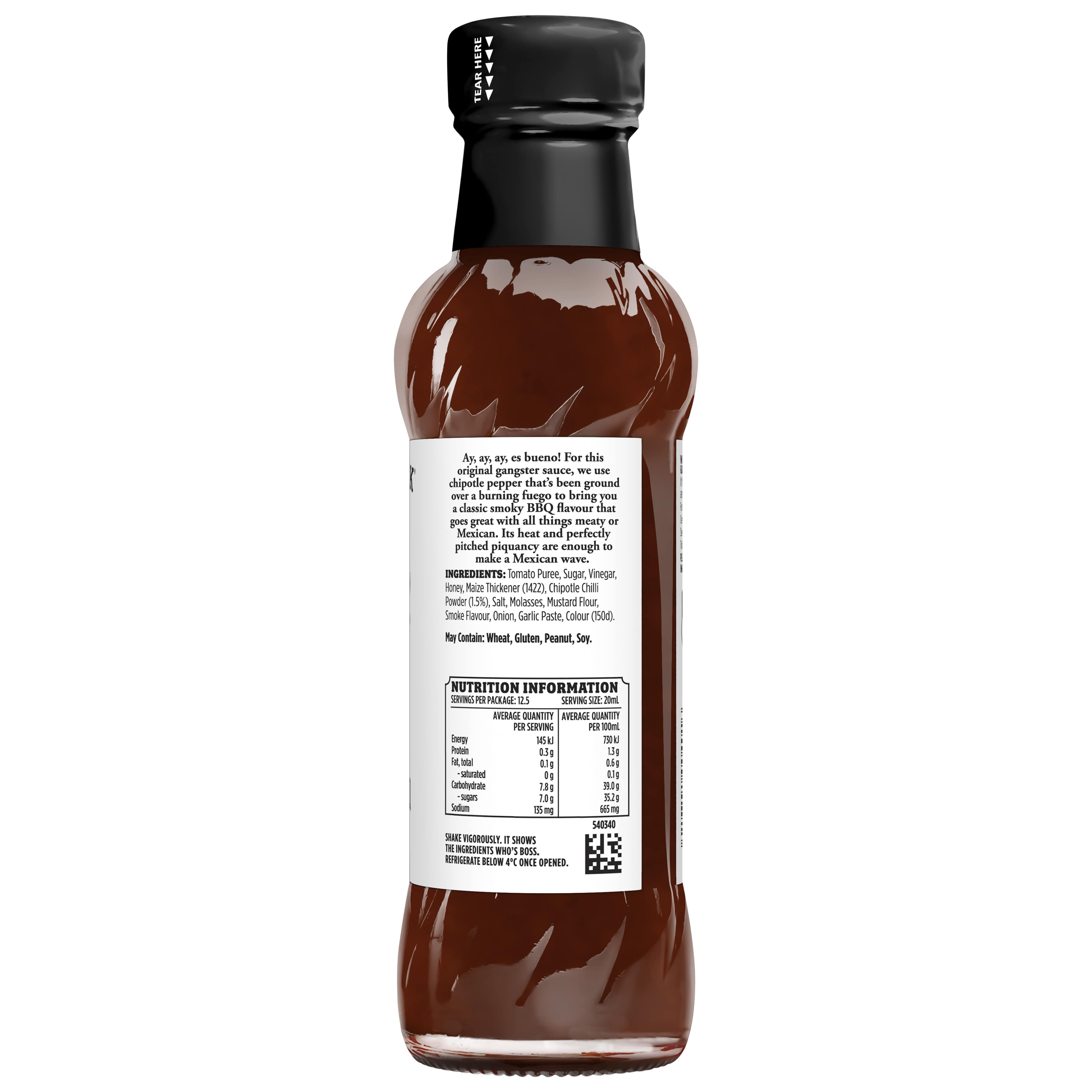 If Chipotle is the name then F. Whitlock & Sons® Chipotle BBQ Sauce is the game! Up your homemade Mexican game with this smoky sauce. F. Whitlock & Sons® Chipotle BBQ Sauce brings a classic spicy BBQ flavours to Mexican dishes, roasted or grilled meats and chicken wings. You can also add to your tacos and burritos or use as a marinade for ribs or spread onto a pulled pork burger. The ideal sauce to add to your repertoire for that Smoky BBQ flavour at home. Explore the rest of the F. Whitlock & Sons® range for more delicious flavours. • Classic smoky BBQ flavour • Goes great with all things meaty • Brilliantly balanced for basting • Perfect sauce for glazed chicken wings • Great with mexican dishes