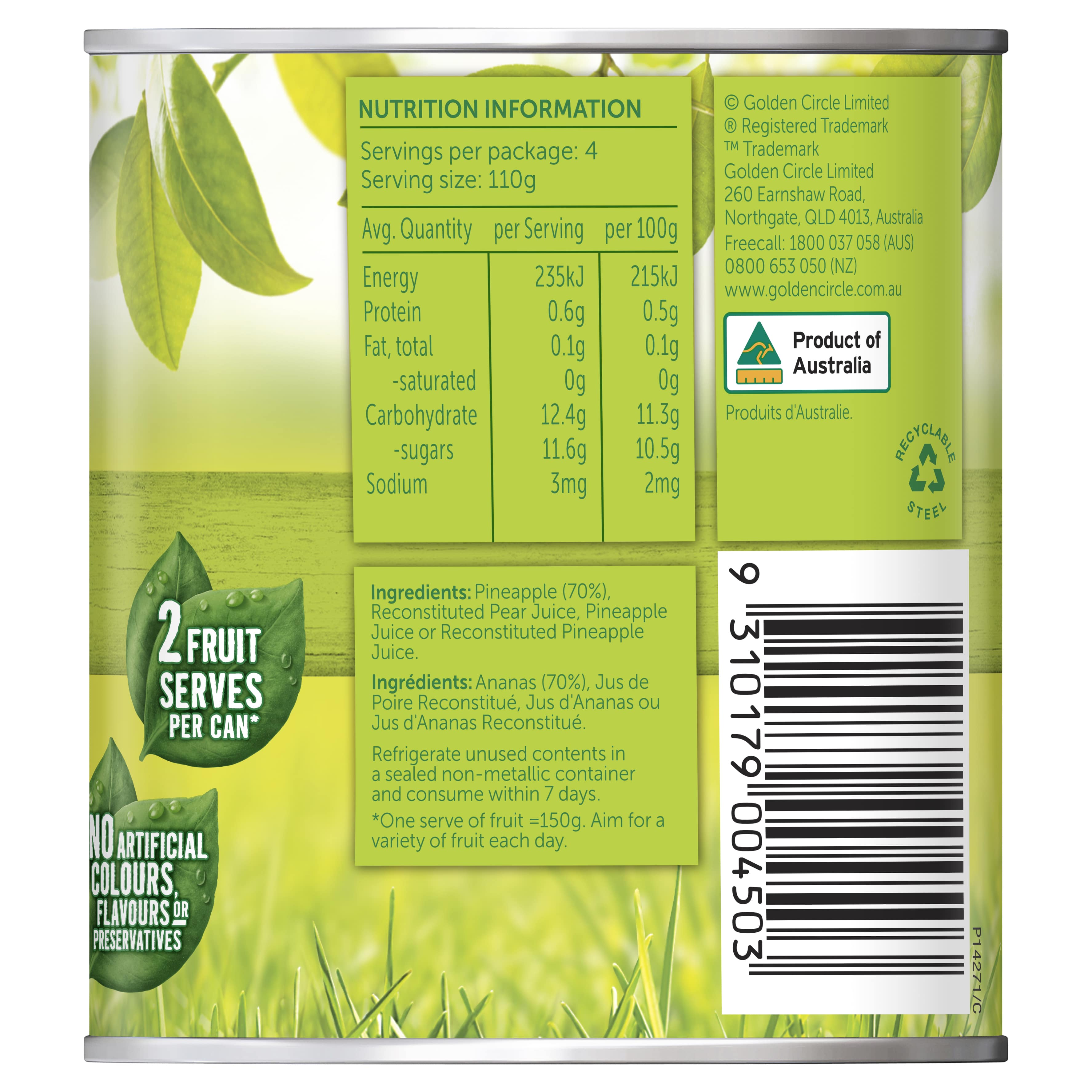 Golden Circle® Australian Pineapple Pieces in Juice 225g