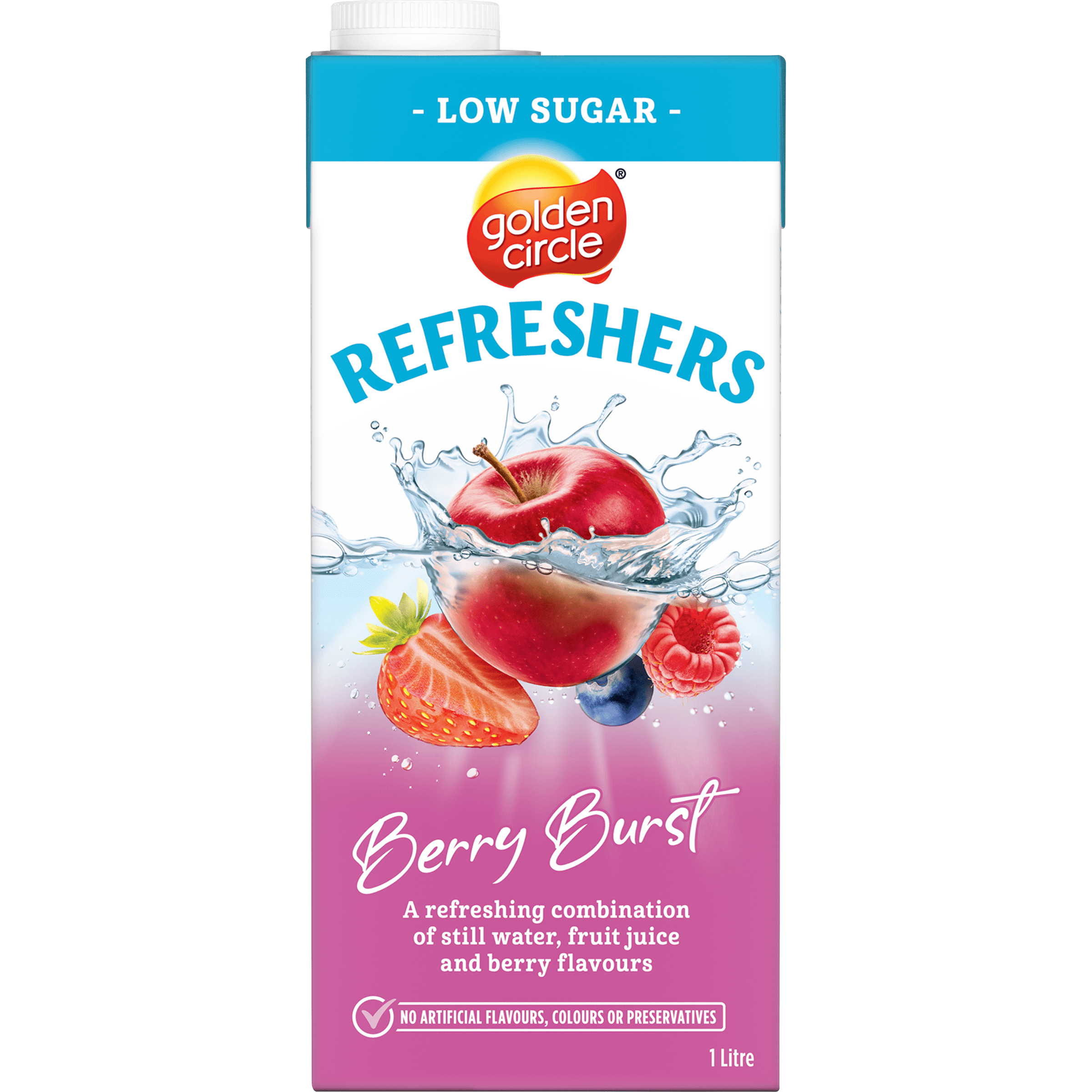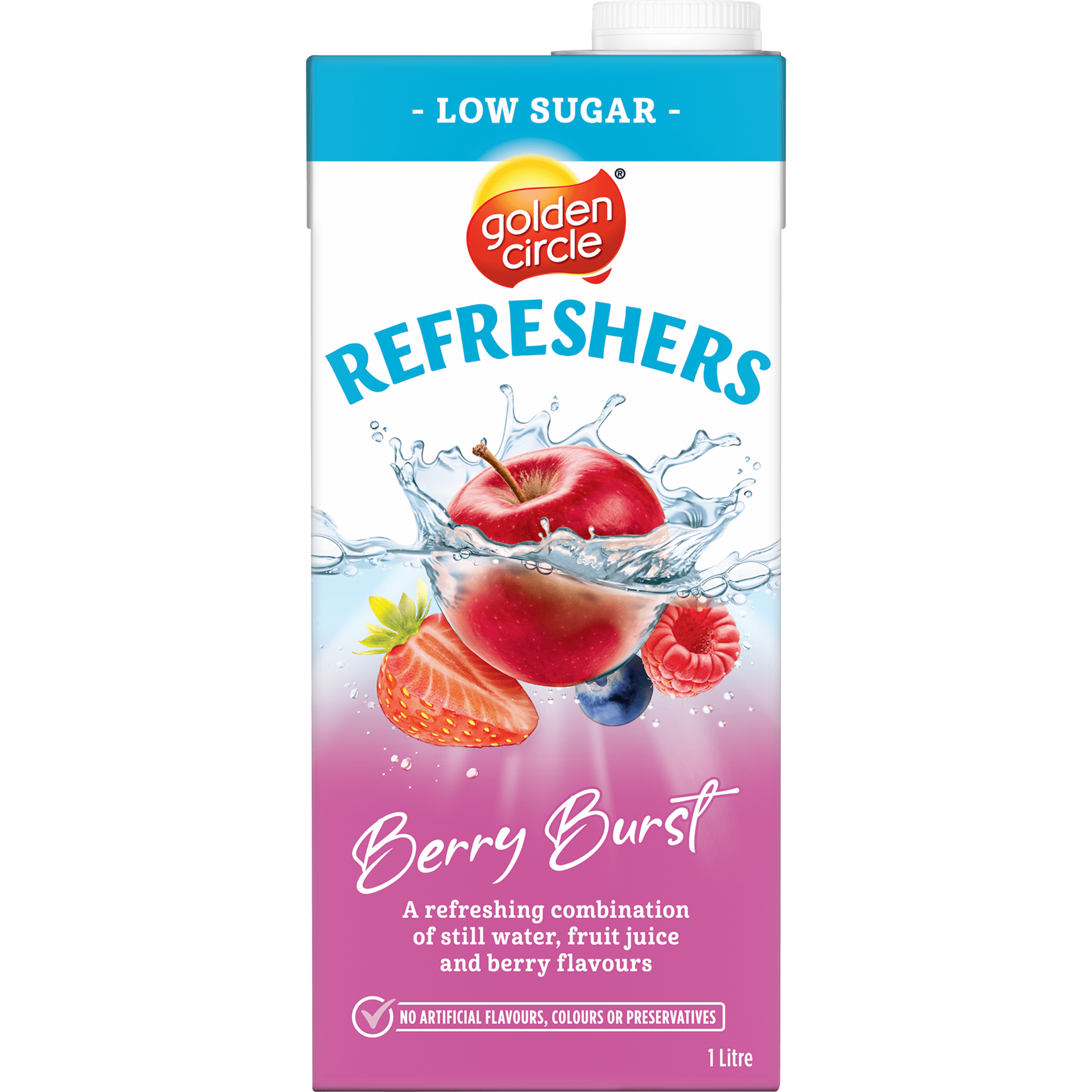Golden Circle® Refreshers Berry Burst brings a new and exciting blend of fruity flavours. Perfect for cooling off on those hot summer days. Low sugar,...