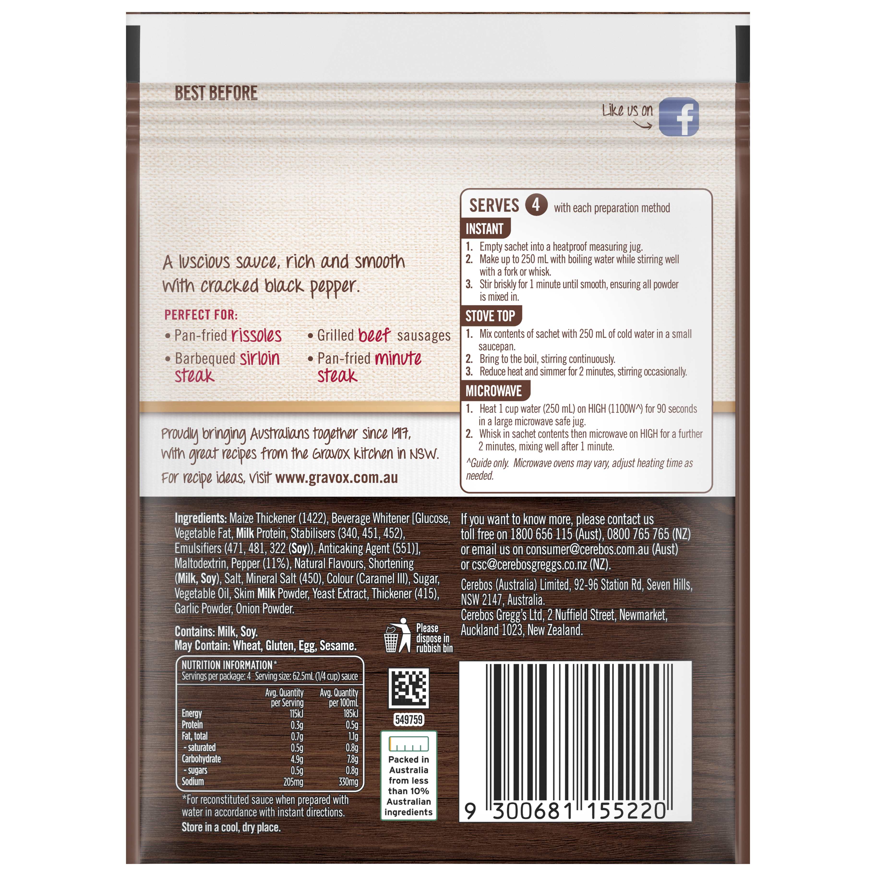 Take your steak and sausages to the next level with Gravox® Pepper Sauce. This rich, smooth sauce is easy to prepare instantly with boiling water and...