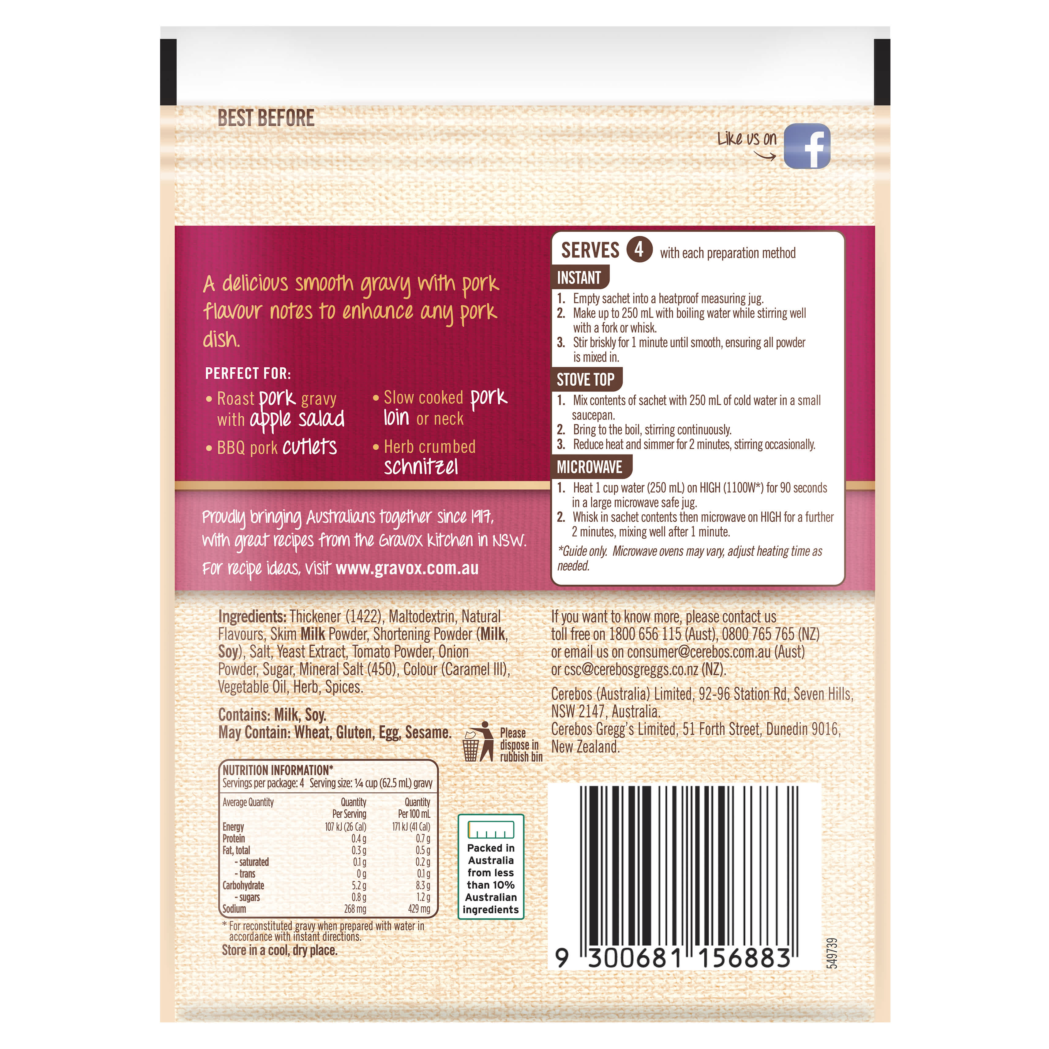Up the pork flavour in your cooking with Gravox® Pork Gravy Mix. This 99% fat free* gravy is made without artificial flavours. Keep things simple by...