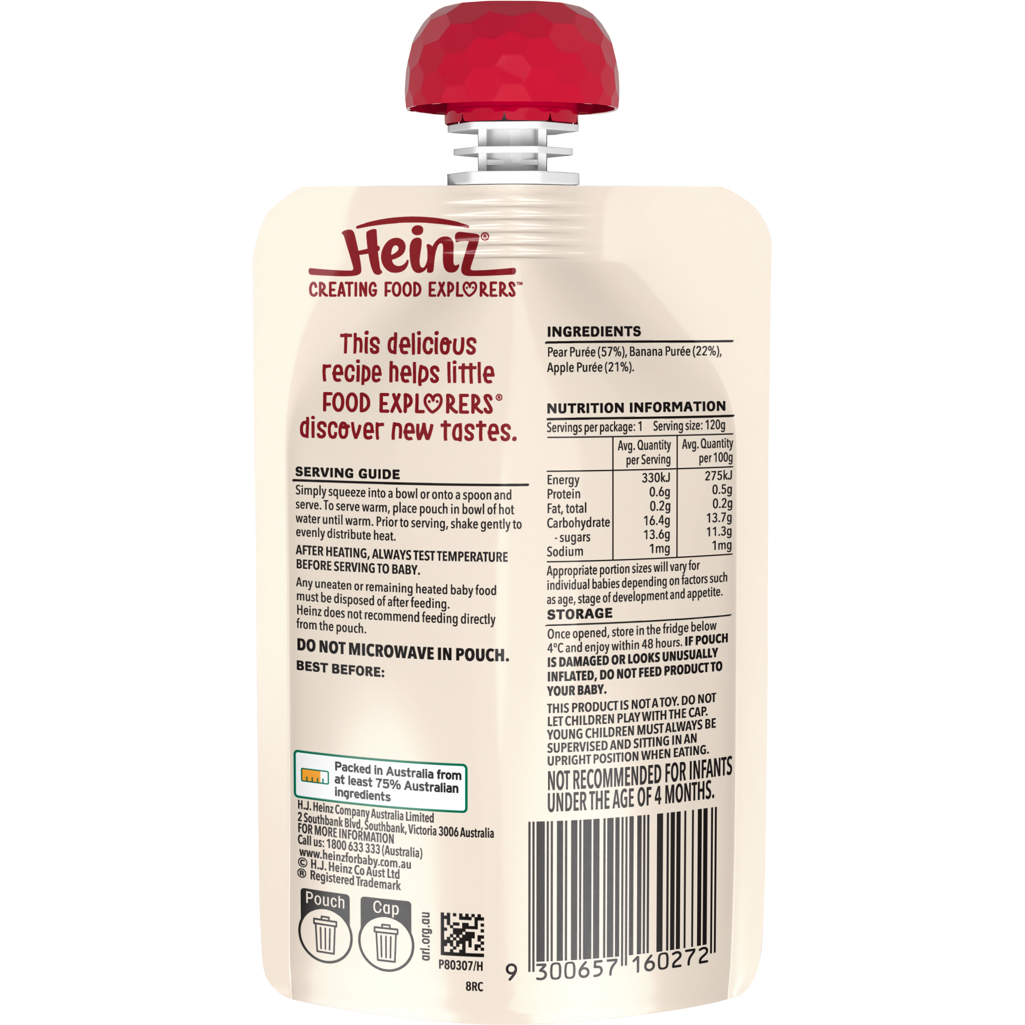 Get your little Food Explorers® off to a fruity start with Heinz® Pear, Banana & Apple. This purée is made with no artificial colours or flavours and...