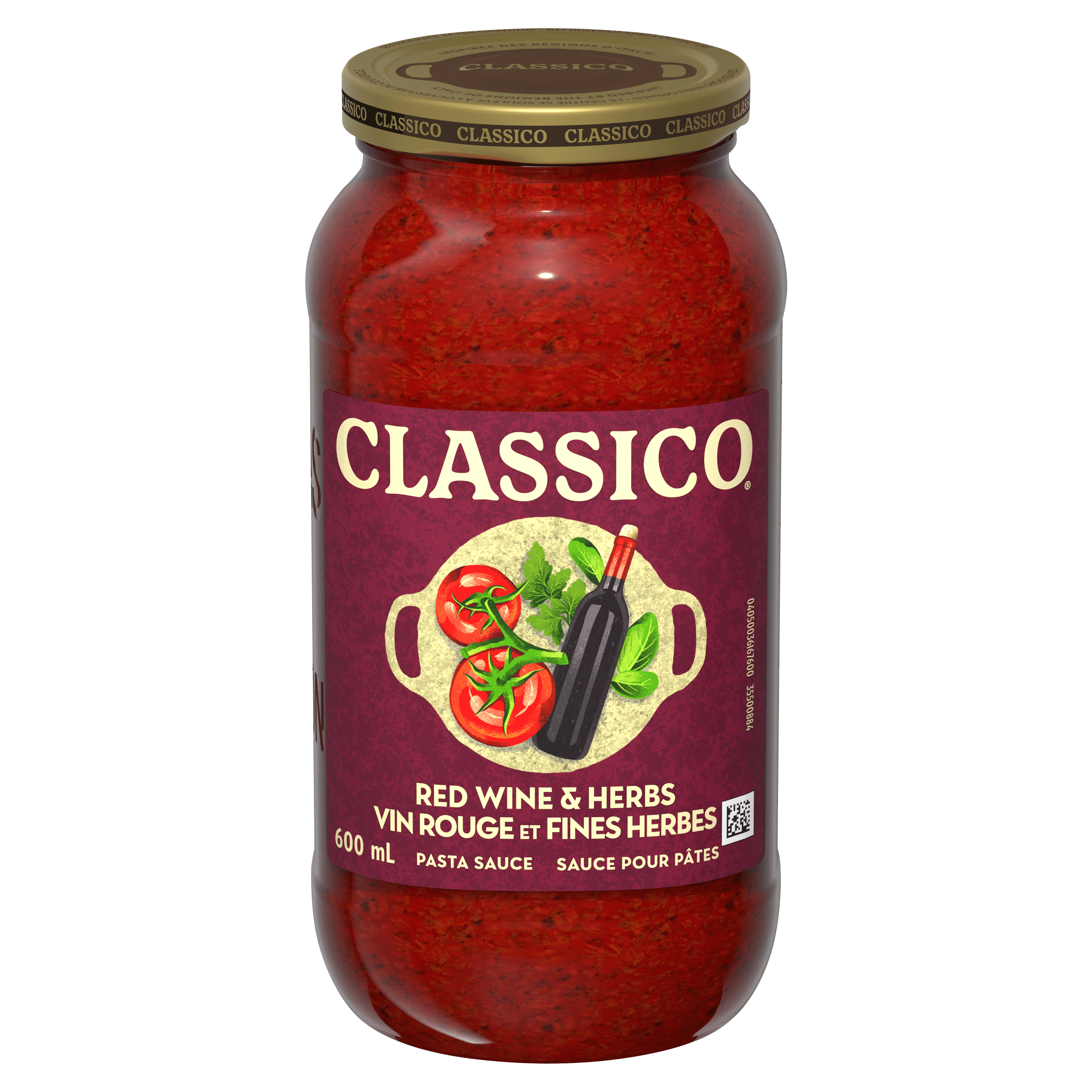 Love at first bite with Classico Red Wine & Herb Pasta Sauce. Crafted with tomatoes, herbs and the warmth of red wine, our pasta sauce offers a classic base that's perfect as is or ready for your personal touch. Homemade is however you make it, whether you add your choice of protein, fresh veggies, a sprinkle of Parmesan or a pinch of salt. Ideal for more than just pasta, our sauce is a versatile addition that pairs deliciously with meatball subs, lasagna, soup or homemade pizza. With minimal prep, Classico Pasta Sauce is an effortless way to bring family and friends together around the table for a meal everyone will love. Simply simmer and serve our ready-to-use sauce with your favourite dish. Refrigerate after opening to maintain freshness. Experience greatness in the making and dinner to your heart's desire with Classico Red Wine & Herb Pasta Sauce.
