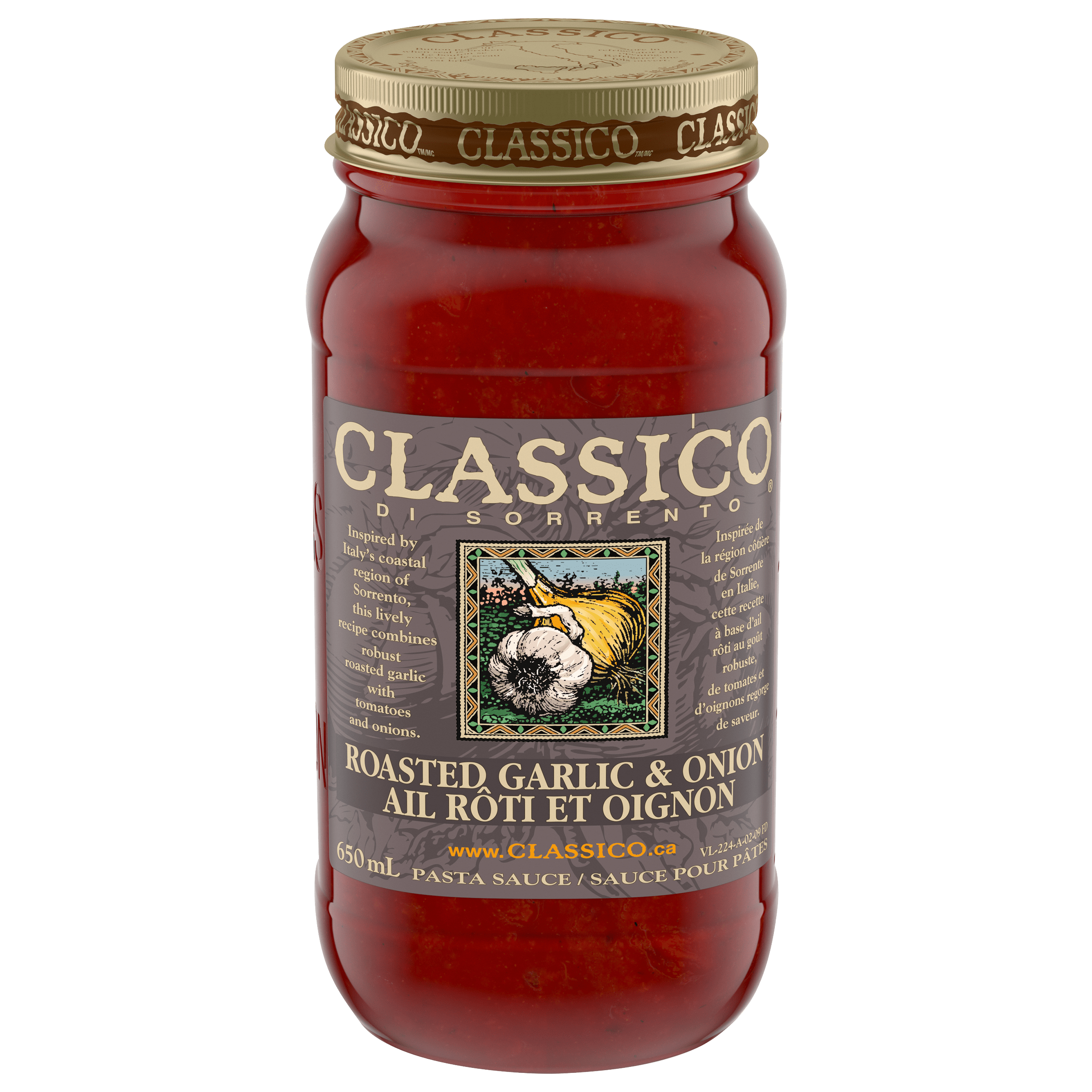 Inspired by Italy’s coastal region of Sorrento, Classico Roasted Garlic & Onion Pasta Sauce adds depth and texture to the classic tomato pasta sauce with roasted garlic and onions for an authentic Italian flavour that’s ready to elevate your meal. At Classico, we have been crafting Italian-inspired pasta sauces for more than 25 years. We use the finest ingredients including vine-ripened tomatoes, aromatic cheese and olive oil, and we select the best herbs and spices to complement each distinct flavor. These ingredients are combined using time-honoured recipes to create a just-like-homemade taste that you have come to enjoy and expect from Classico. We make it like you'd make it.