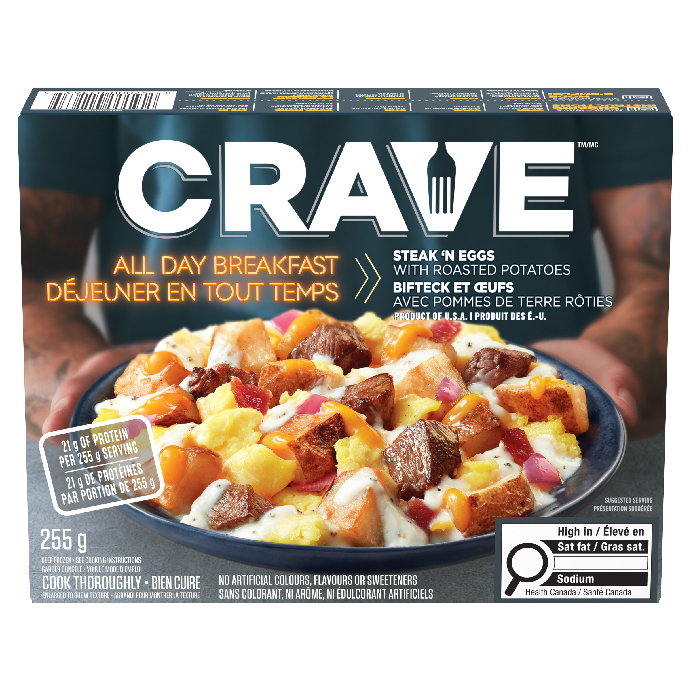 Show your mouth a good time with CRAVE All Day Breakfast Steak 'N Eggs with Roasted Potatoes! Our mouthwatering all-day breakfast features juicy...