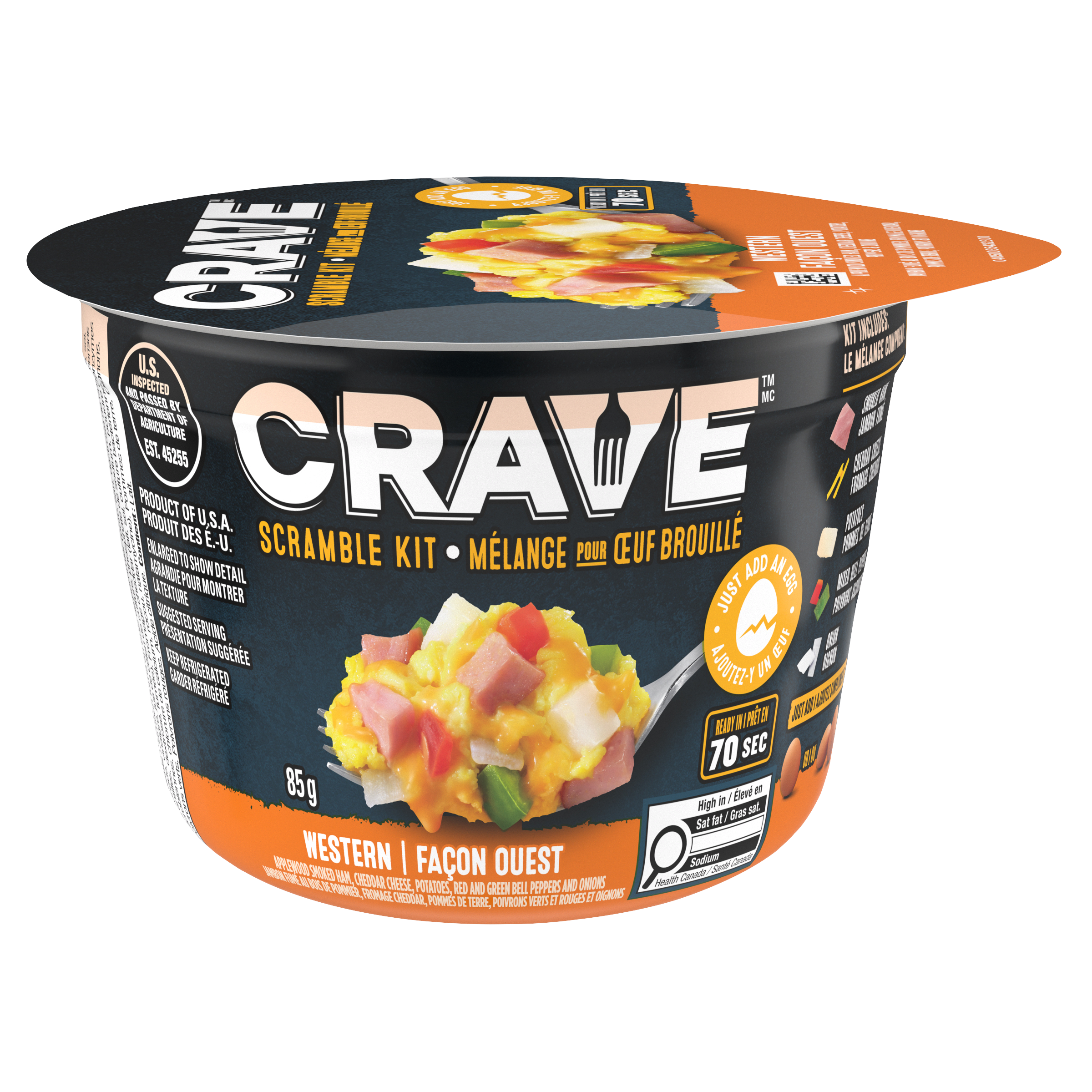 Start your day with a quick and easy breakfast. CRAVE Western Scramble Kits are ready in just 70 seconds. Our Western Scramble Kit contains Applewood...