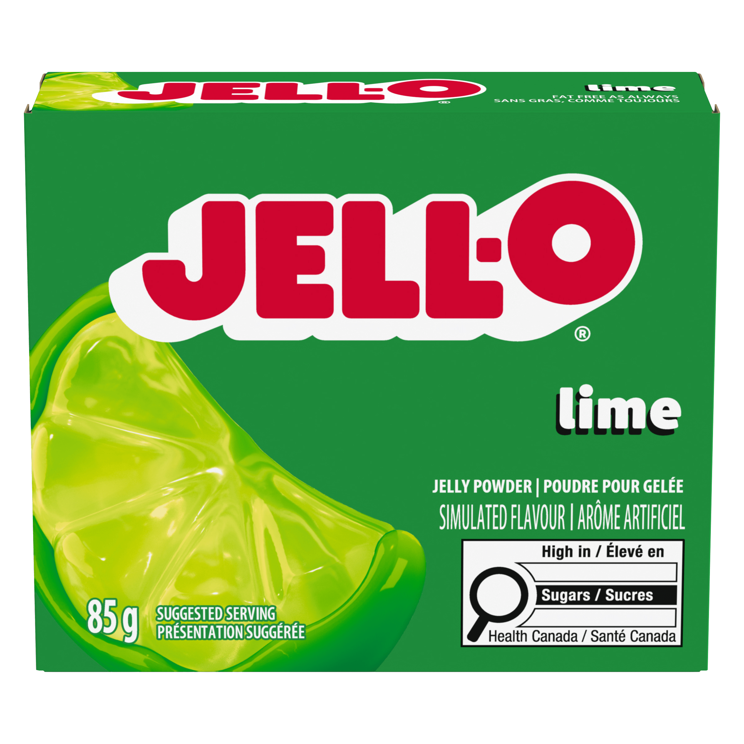 Snack happy. Jell-O Lime Jelly Powder Mix lets you add some wonder to your day with a delicious snack. Spoon up a smile with our lime Jell-O that contains 70 calories per serving. Our colourful, jiggly treat is perfect for everyday snacking or special occasions with family and friends. Additionally, our jelly powder mix is a versatile ingredient for creating desserts like poke cakes, parfaits, pretzel salads, rainbow layer cakes and more. Our lime dessert is easy to prepare. Simply add 1 cup (250 mL) of boiling water to jelly powder and stir until completely dissolved. Next, stir in 1 cup (250 mL) of cold water or fruit juice and chill until set. Each Jell-O jelly powder mix is individually packaged in an 85 g sealed pouch and makes about 4 servings. Discover the timeless deliciousness of Jell-O gelatin.