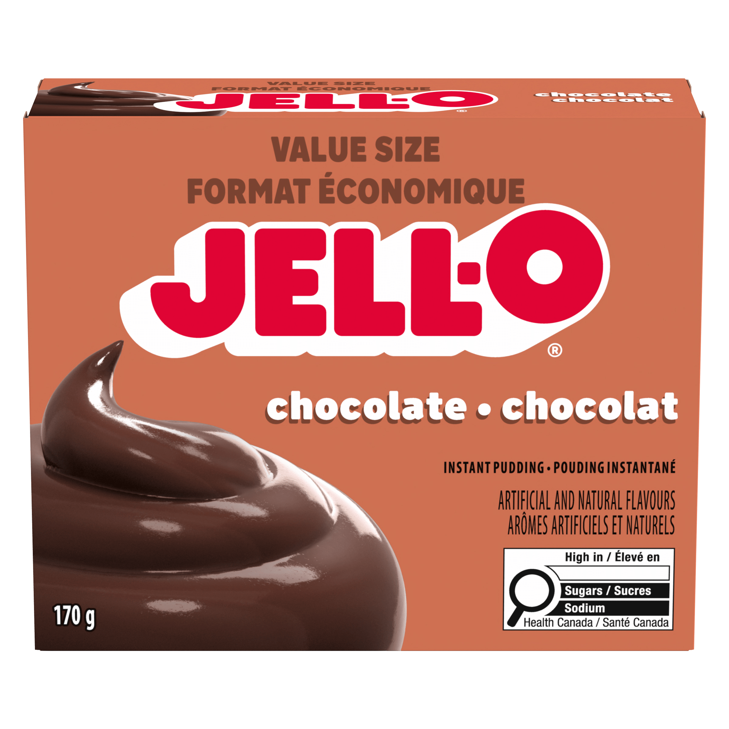 Snack happy. Jell-O Chocolate Instant Pudding Mix tastes delicious whether you enjoy it as a treat or use it as an ingredient in your favourite recipes. Add some wonder to your day with a delicious chocolate dessert. Try our creamy chocolate pudding in cakes, desserts, with fruit, topped with cream or on its own. Our instant chocolate pudding mix is easy to prepare. Simply pour 2 cups (500 mL) of cold milk into pudding mix, beat for 2 minutes, then let stand for 3 to 5 minutes, depending on your personal preference for firmness. Each Jell-O pudding mix comes packaged in a 113 g sealed pouch and makes about 5 servings. Discover the timeless deliciousness of Jell-O pudding.