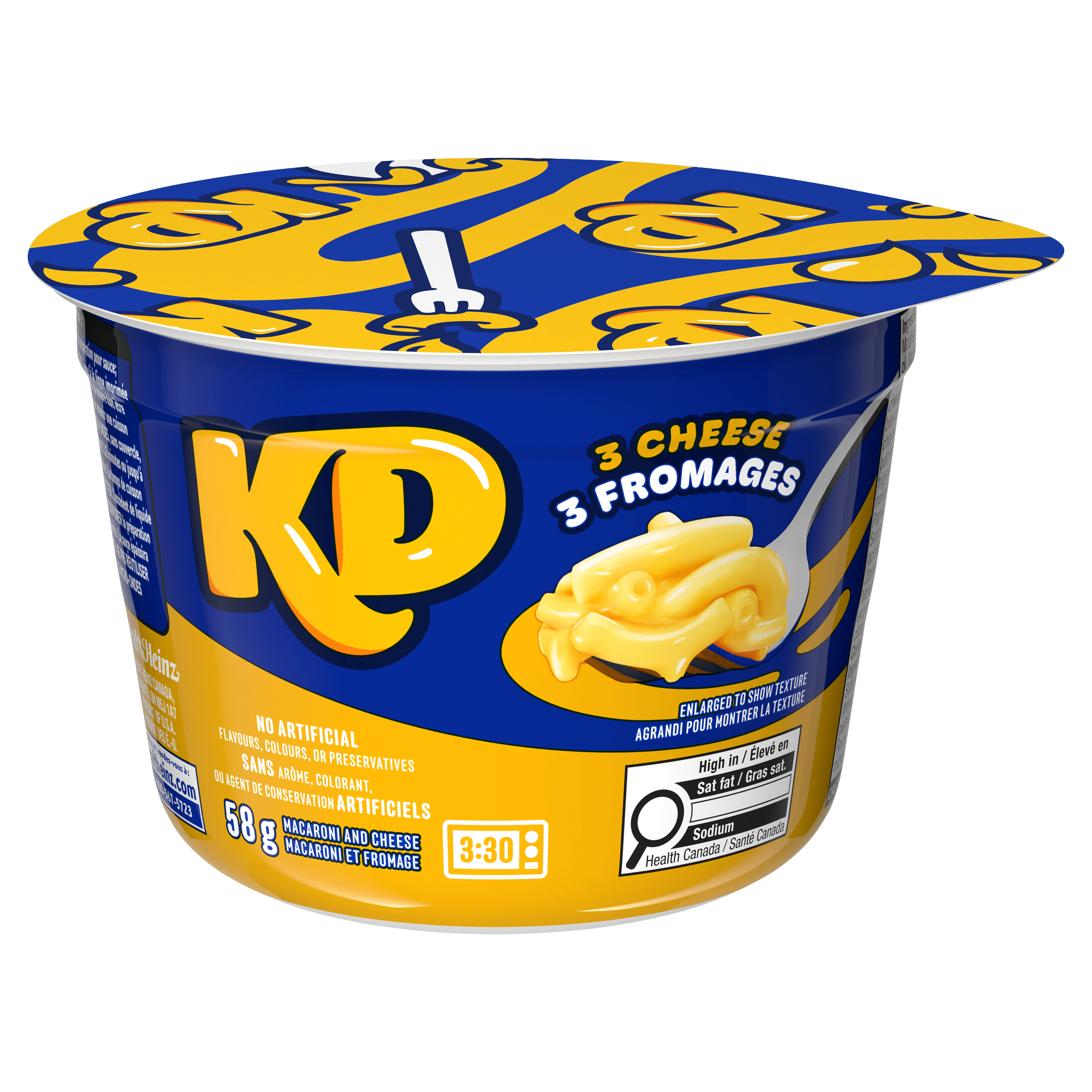 Kraft Dinner 3 Cheese Macaroni and Cheese Snack Cup combines three different kinds of cheese — cheddar, Monterey Jack and blue cheese — for a...