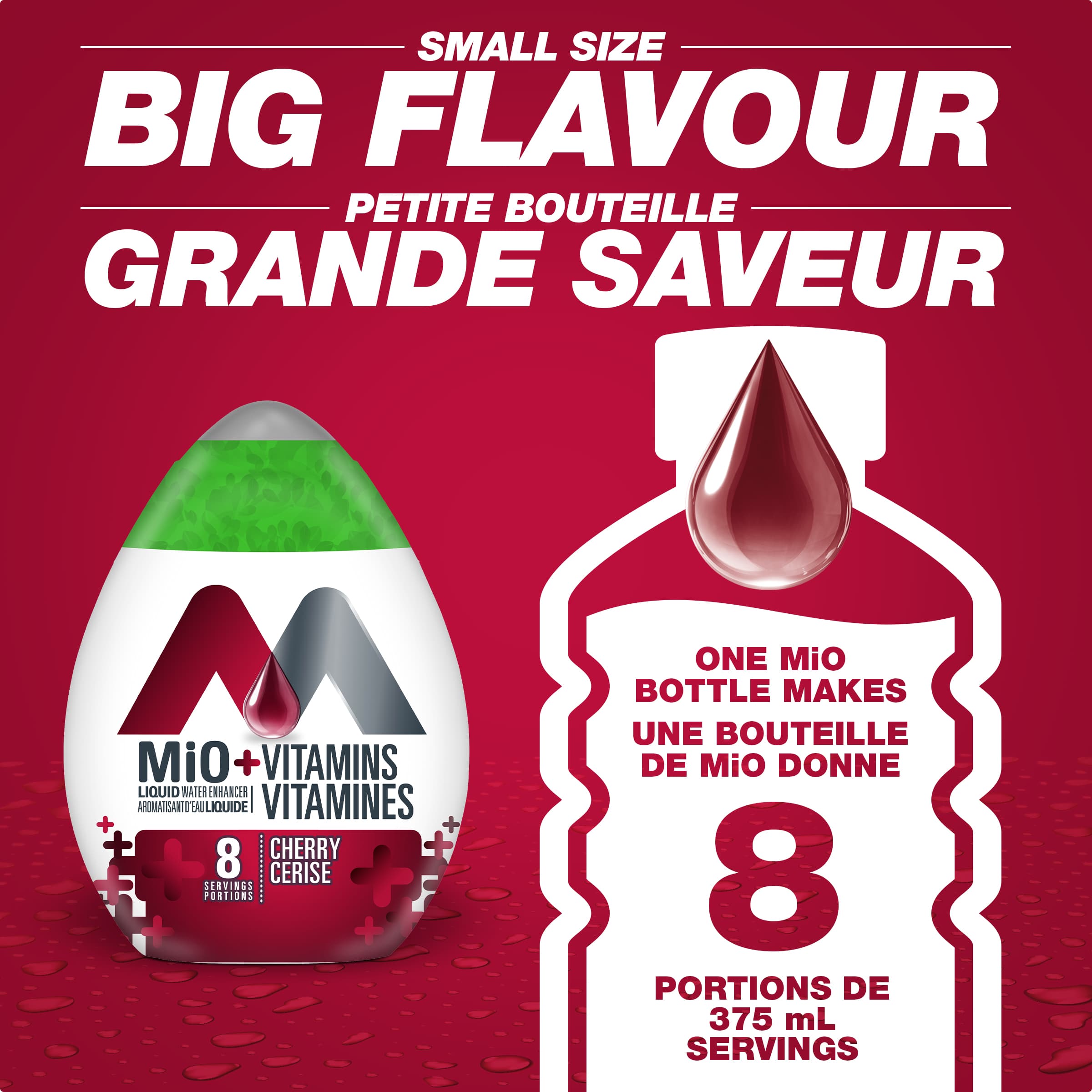 MiO +Vitamins Cherry Liquid Water Enhancer contains B vitamins at your fingertips. A simple squeeze from our conveniently sized bottle delivers...