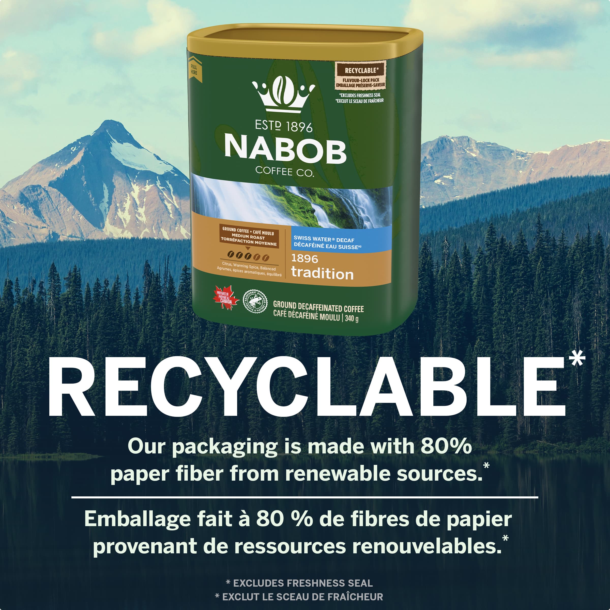 Explore the flavours of the world from your home with Nabob Ground Coffee. Nabob Medium Roast Swiss Water Decaf 1896 Tradition Ground Coffee is made...