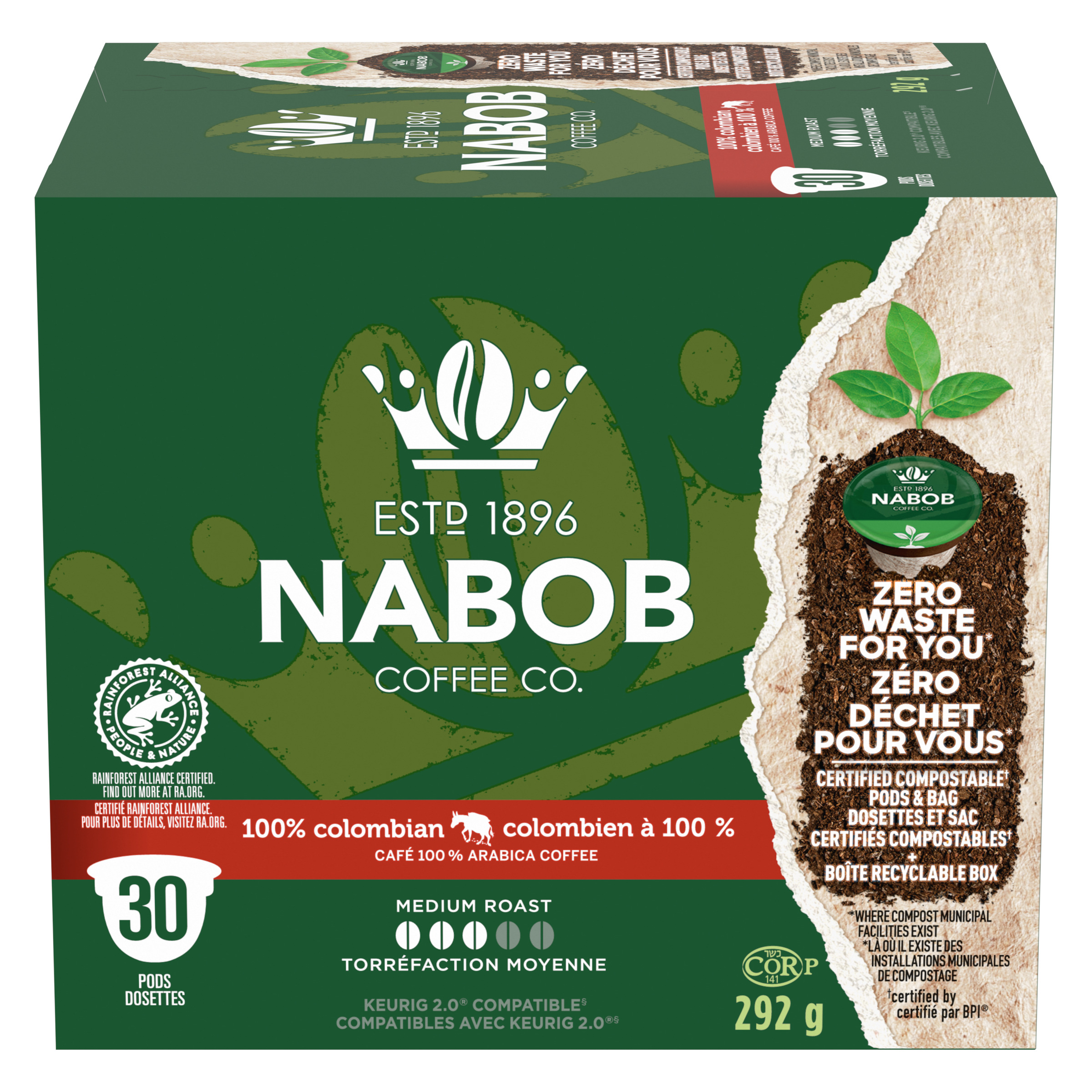 Wake up every morning with Nabob Colombian Coffee 100% Compostable Pods. Our coffee is Rainforest Alliance Certified. Colombian Blend is made with...