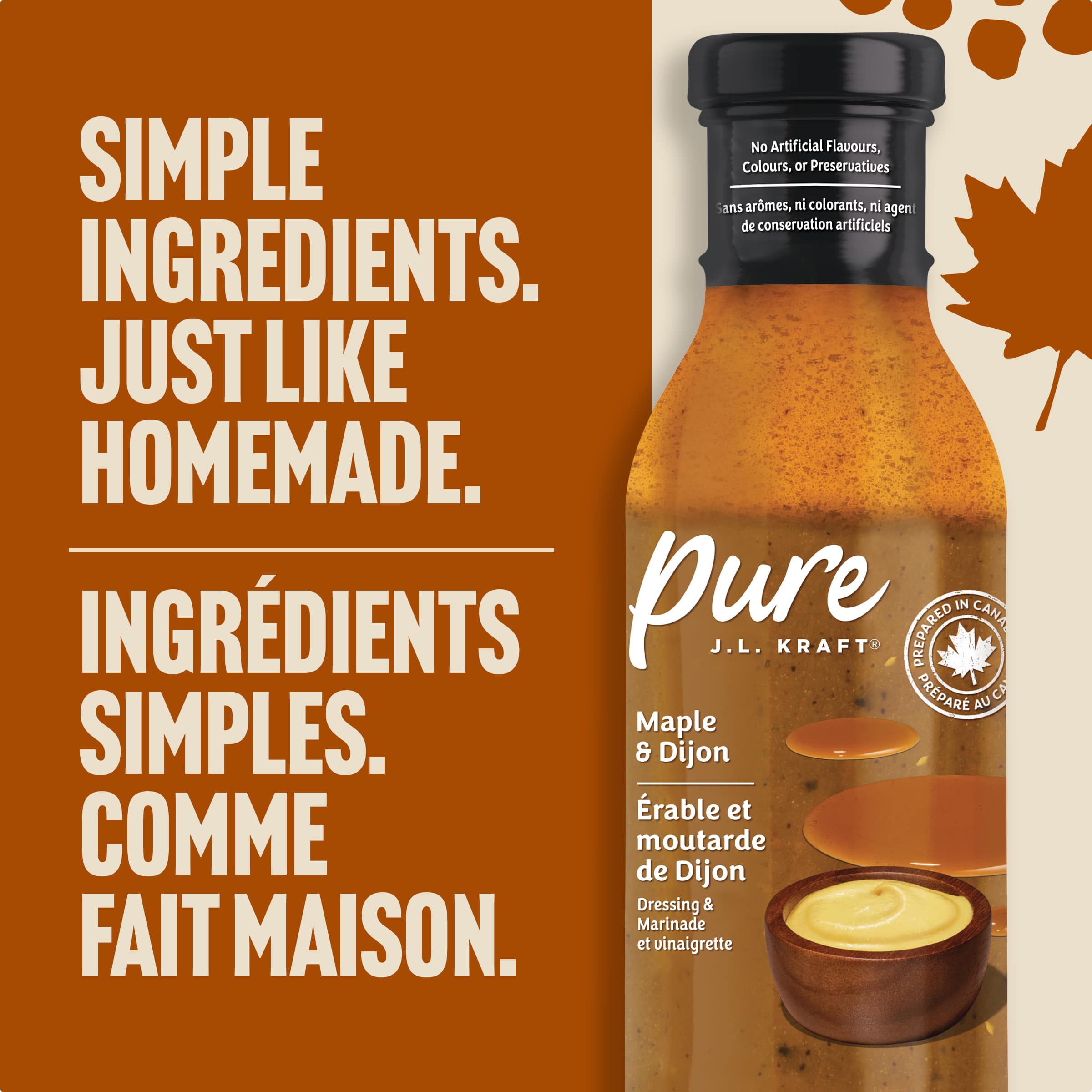 Simple ingredients, just like homemade. J.L. KRAFT Pure is made with no artificial flavours, colours or preservatives. Our J.L. KRAFT Pure Maple &...