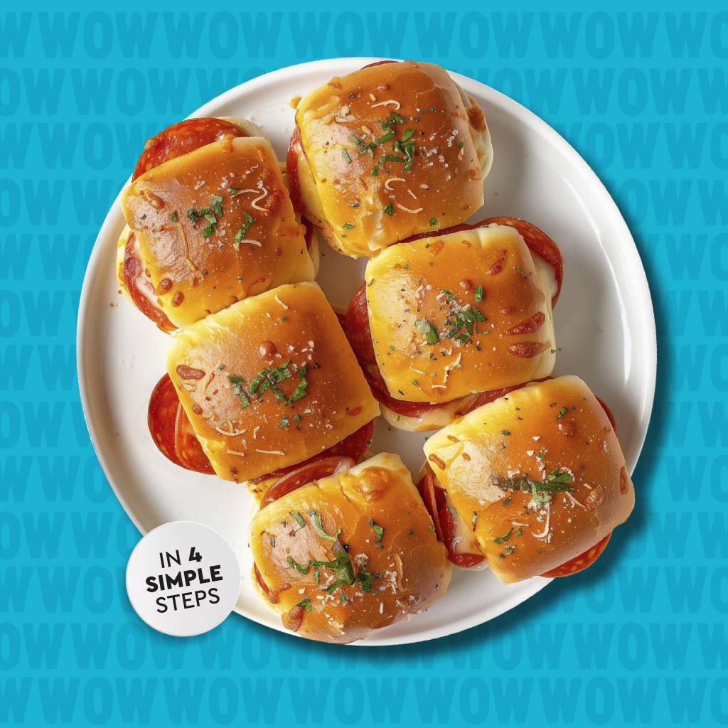 Remove rolls from package, but do not separate rolls. Cut block of rolls horizontally in half; place bottom halves of rolls in 13x9-inch baking dish sprayed with cooking spray. Spread with pizza sauce; sprinkle with half the mozzarella. Top with pepperoni and remaining mozzarella. Cover with tops of rolls.
