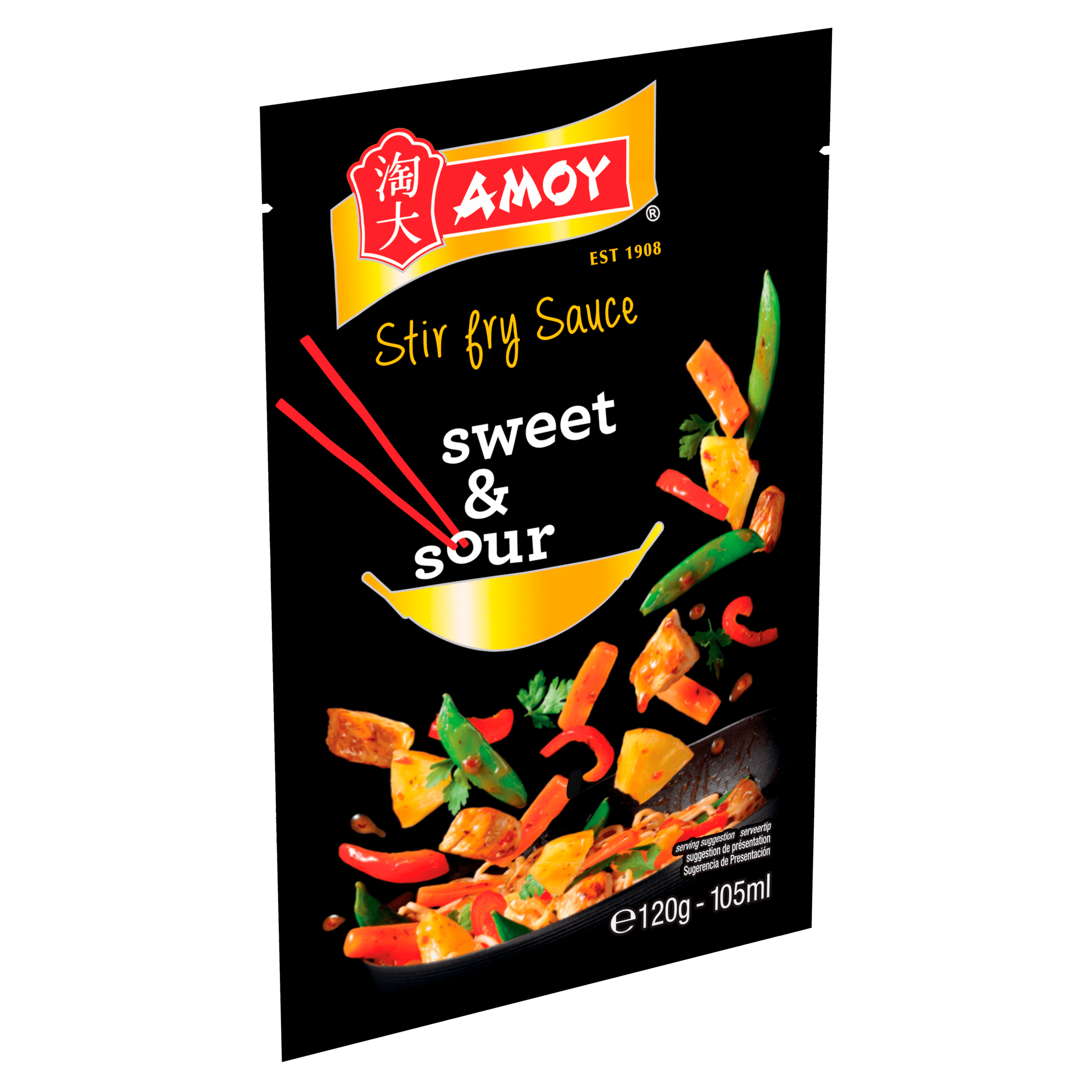A blend of red bell peppers, fresh ginger and fresh herbs in a sweet & sour sauce. Just add vegetables, chicken and Amoy Straight to Wok thread fine noodles.