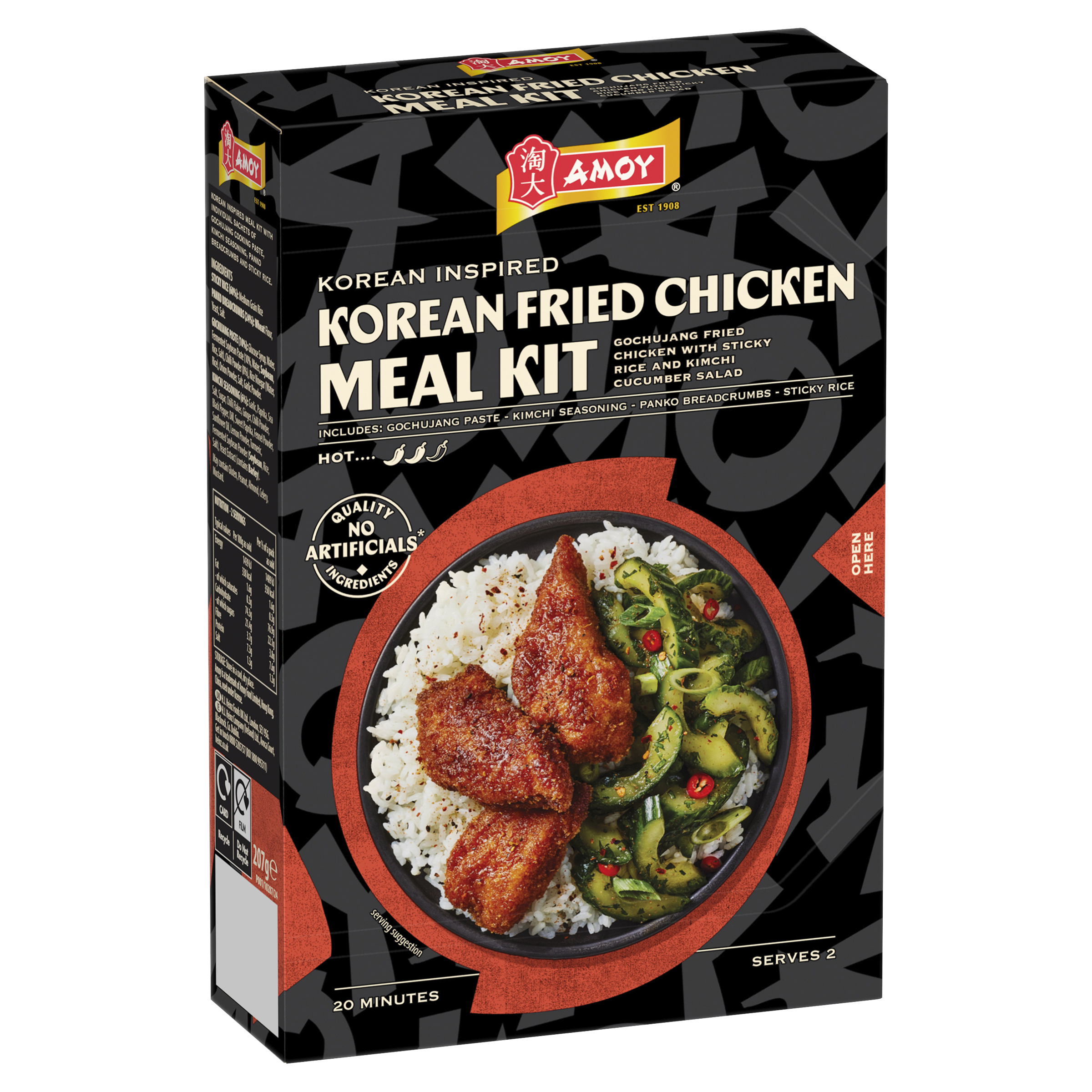 In this Amoy Korean Fried Chicken Meal kit, sweet and spicy gochujang glazes crispy panko-crumbed chicken, complemented by a savoury umami kimchi...