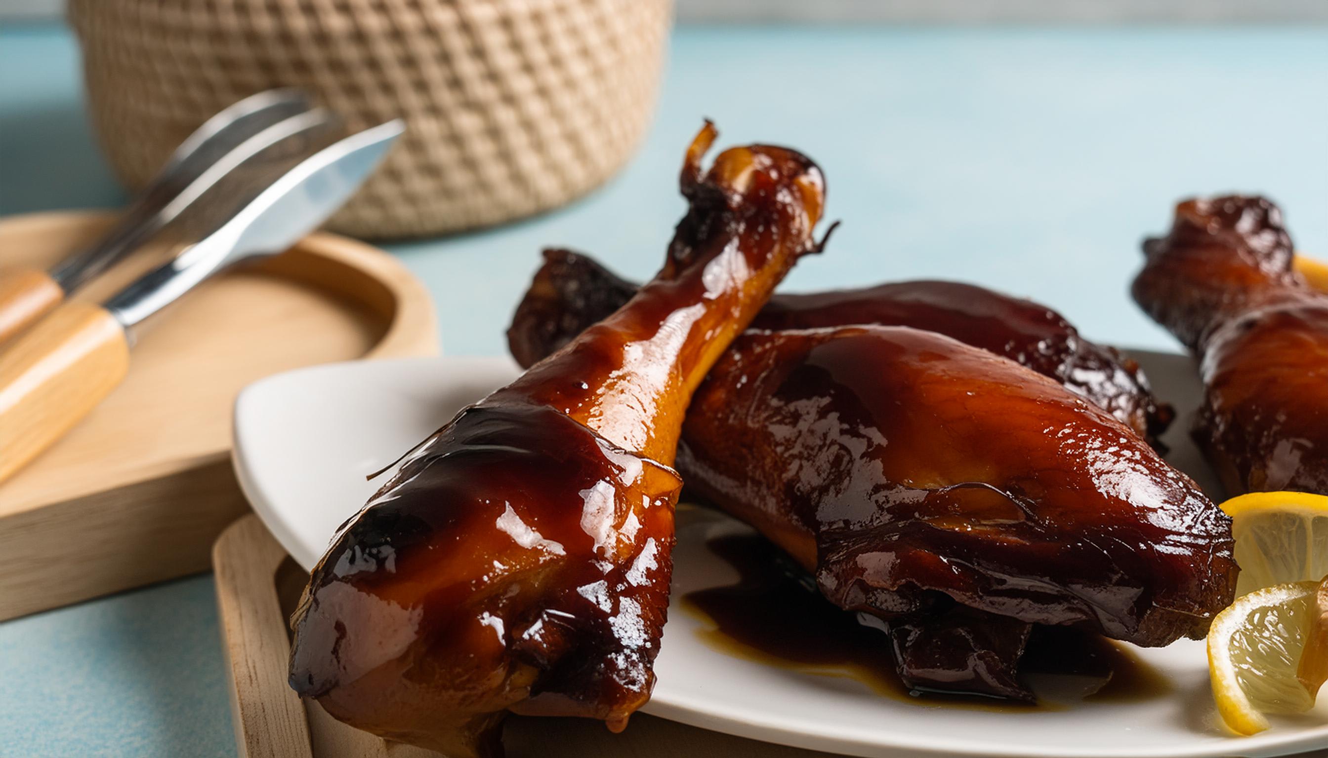 Place the drumsticks over grey coals of a barbecue, turn often and brush with the marinade until the drumsticks are thoroughly cooked and sticky