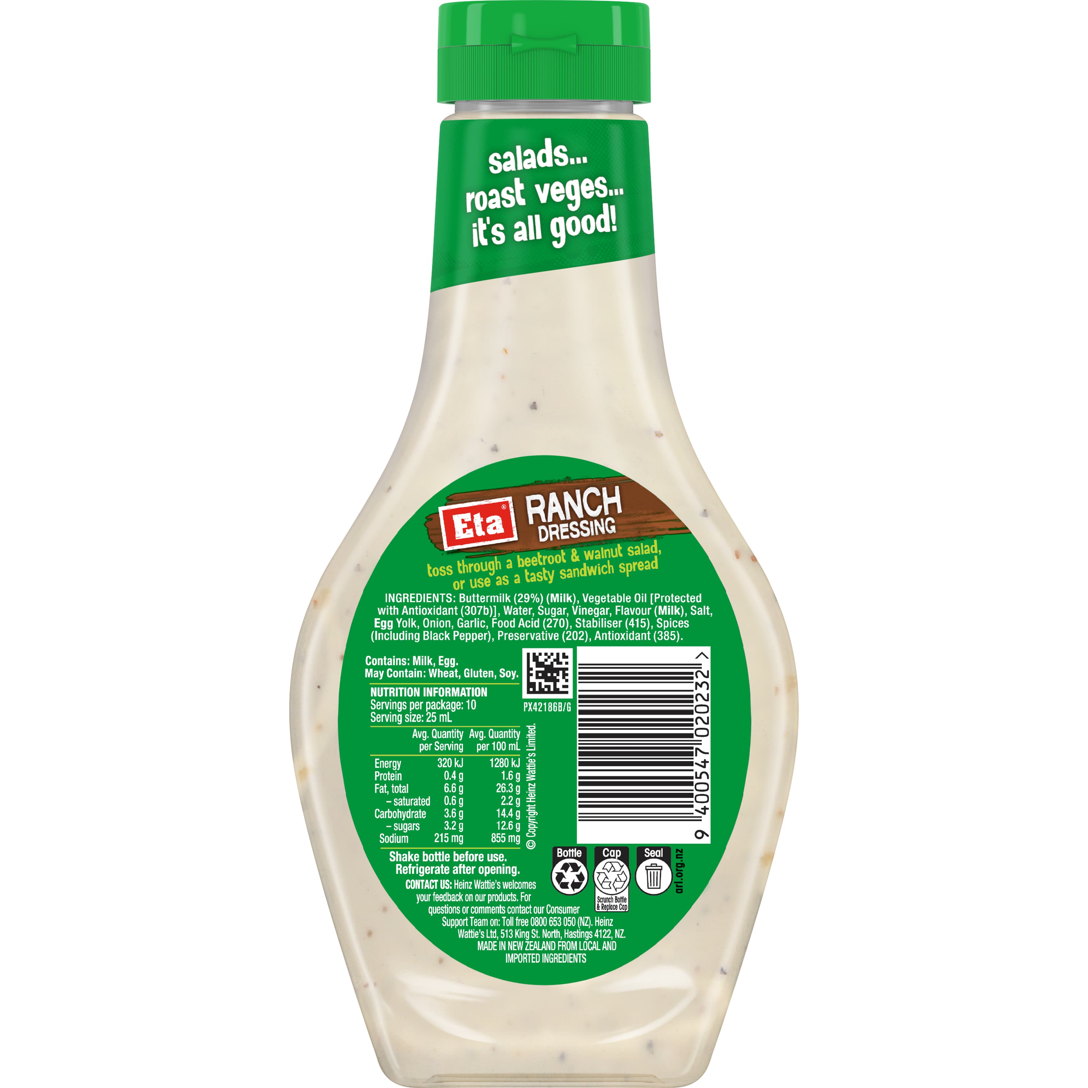 Creamy and versatile, Eta® Ranch Dressing is not just a tasty salad dressing. Toss through a cold pasta dish or use to flavour mashed potato. Flavour...