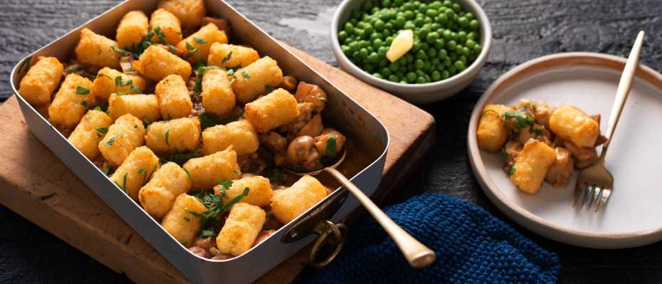 Add the butter, leeks and garlic and stir-fry until leeks soften. Add mushrooms and Gregg's Rubbed Thyme. Continue cooking a further minute. Add flour and stir to mix. Gradually add chicken stock, stirring continuously until sauce thickens. Add chicken back into the pan. Continue cooking and stirring until the sauce comes to the boil. Reduce heat. Simmer for 5 minutes. Stir through parsley. Transfer chicken and leek filling to an ovenproof dish. Top with Wattie's frozen Hash Bites. Place in the oven. Cook for 25-30 minutes, until hash bites are golden and filling cooked. Serve garnished with extra chopped parsley if wished. Accompany with steamed vegetables like broccoli, beans, courgettes or peas on the side.