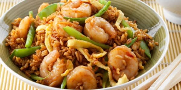 Return the prawns to the wok with the cooked rice and snow peas and toss together in the sauce. Continue stir-frying until the rice and prawns are hot. Carefully stir through the sliced omelette. Serve with steamed Asian greens.