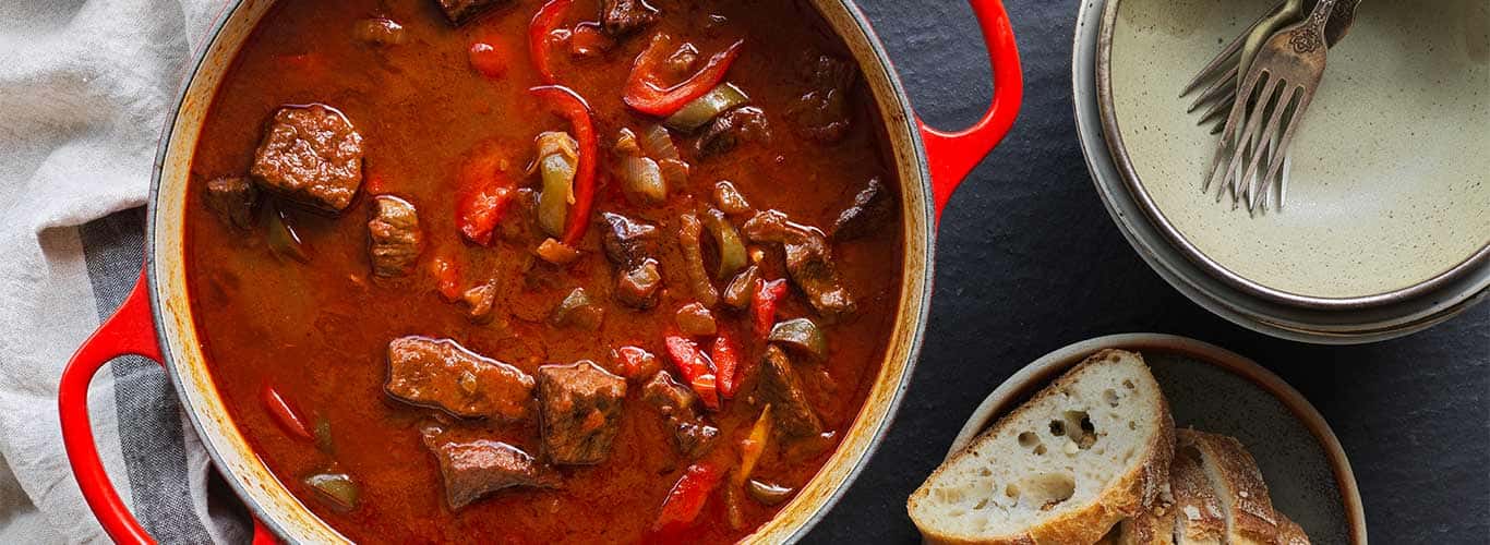 Add the garlic and caraway seeds and cook, stirring for 1 minute. Stir in the Gregg's Ground Paprika and Gregg's Smoked Paprika.