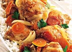 Prepare the recipe following step 1 to 4 and place in a slow cooker omitting the chicken stock. Cook on LOW for approx 8 hours (refer to your user manual). Serve as above.