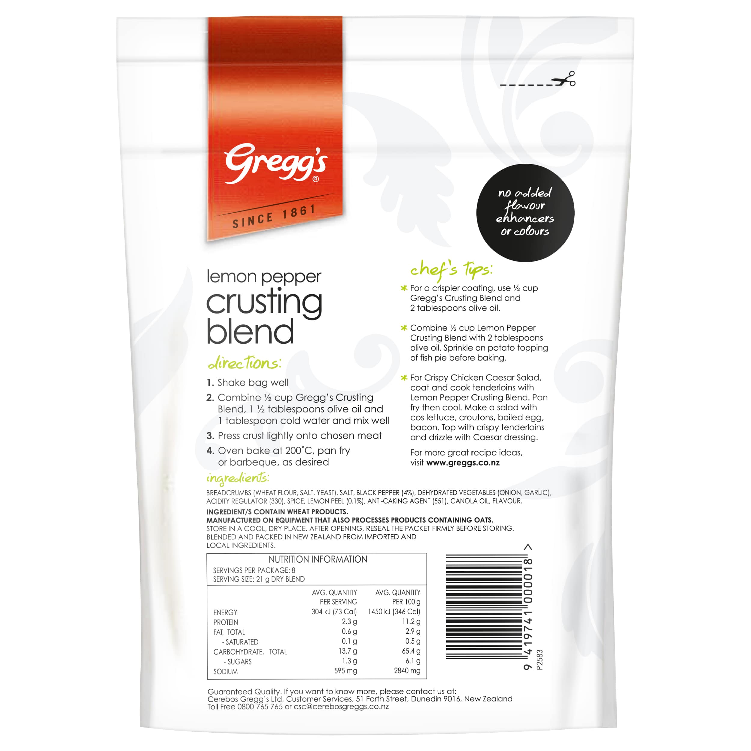 Rich in zesty flavour, Gregg's® Lemon Pepper Crusting Blend adds a crispy crunch to any fish or meat cut. Pair with olive oil for a delicious and...