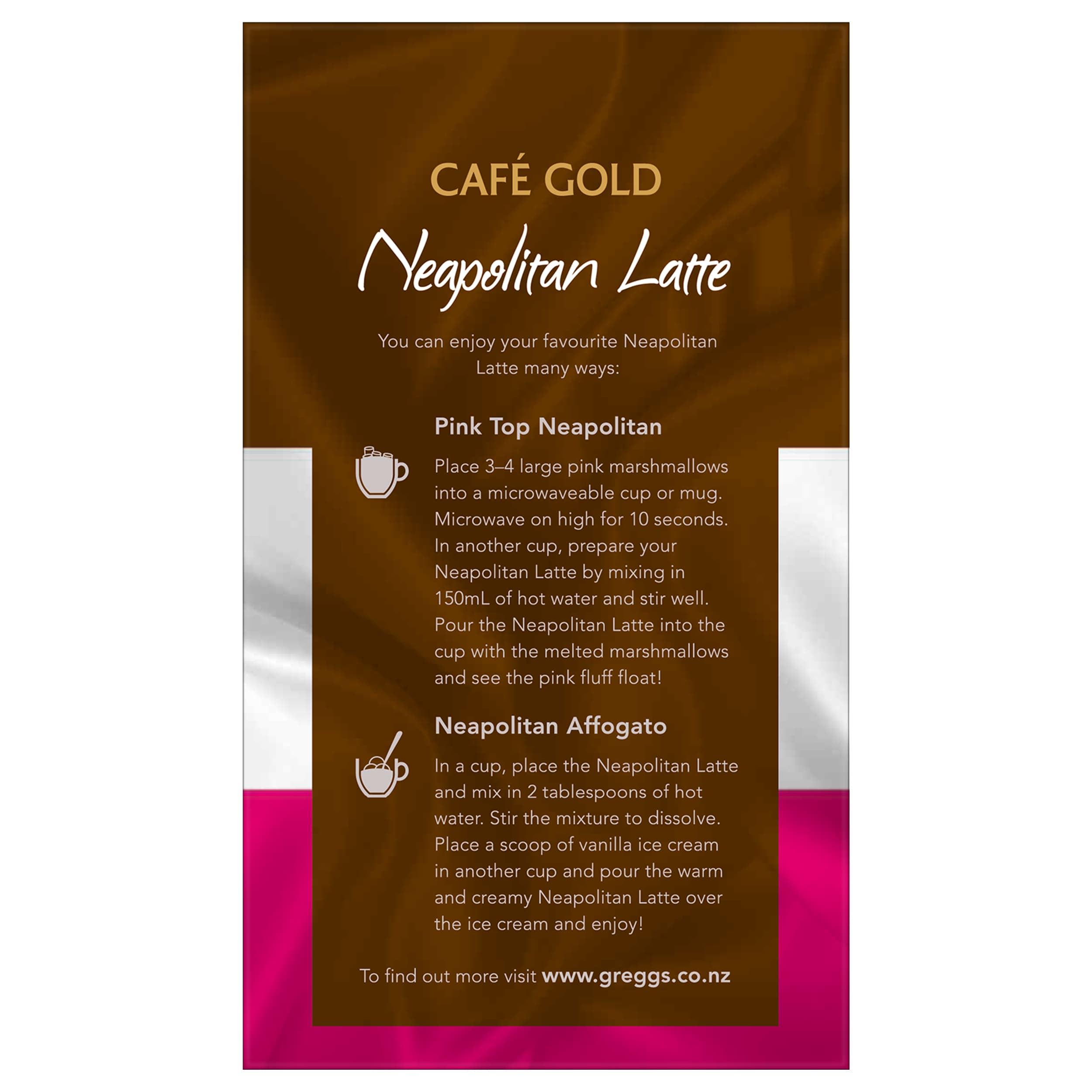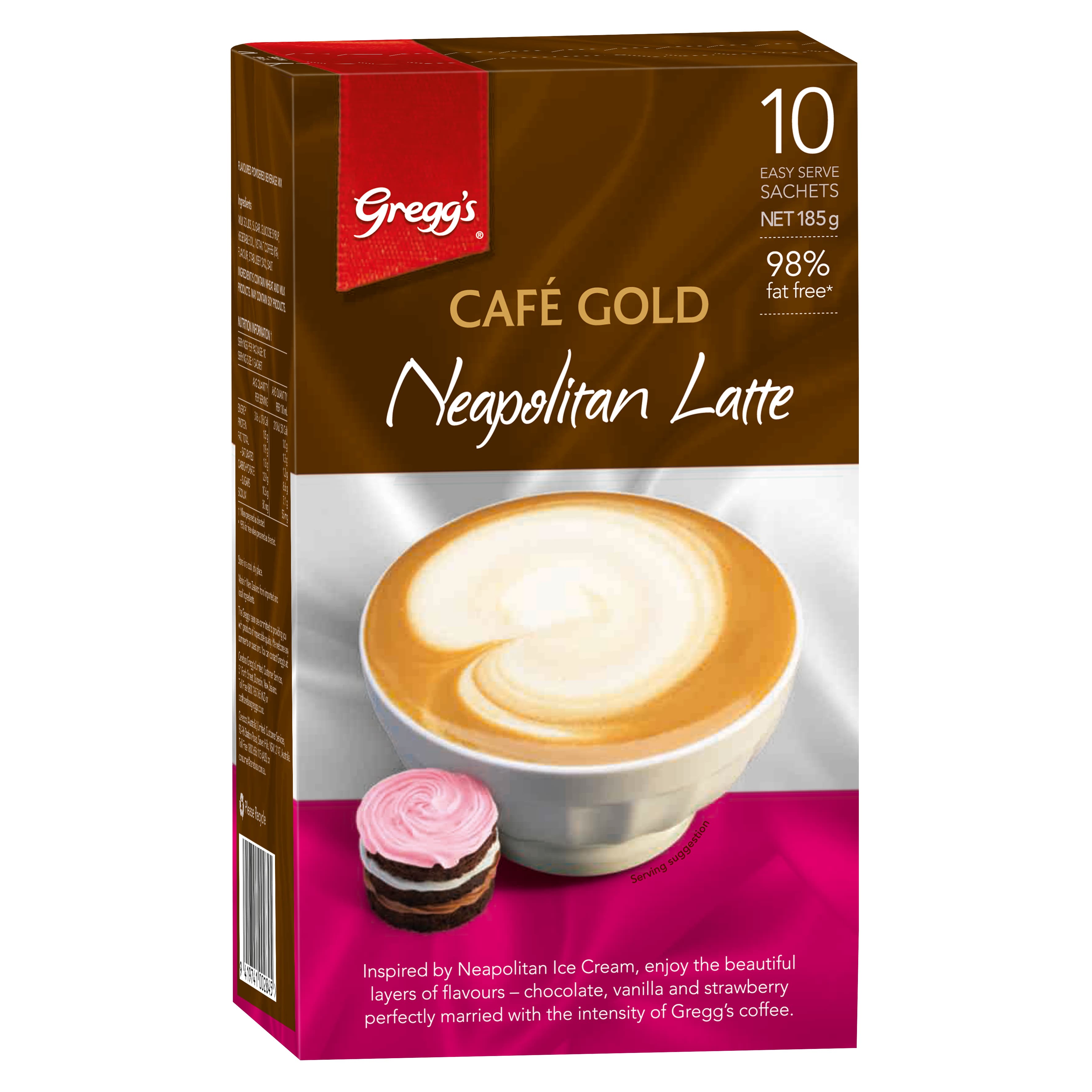 Indulge in a latte inspired by Neapolitan ice cream. Gregg’s® Café Gold Neapolitan Latte provides luxury in an instant, packed in convenient single...