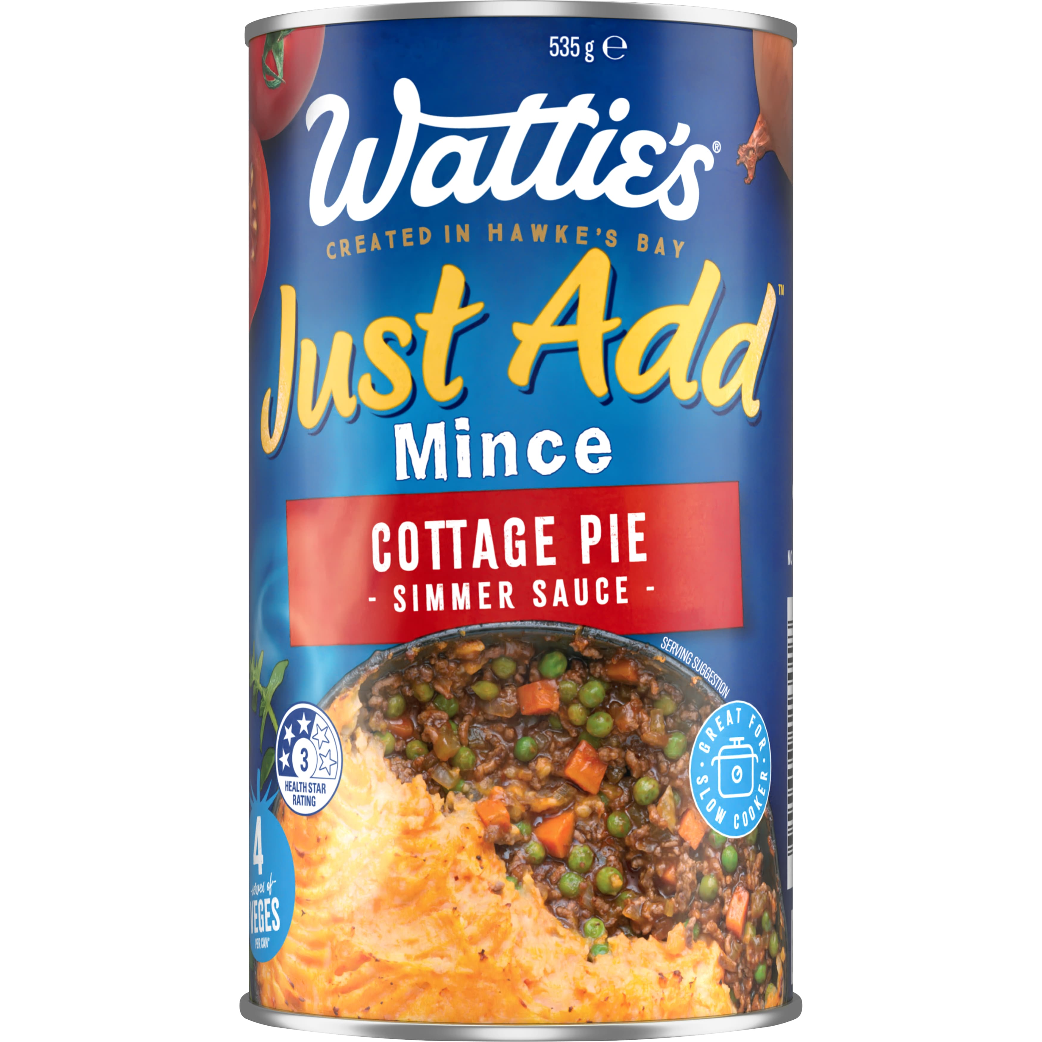 You don't need to forego a delicious dinner on busy days thanks to Wattie's® Just Add™ Mince Cottage Pie Simmer Sauce. Simply add cooked mince and...