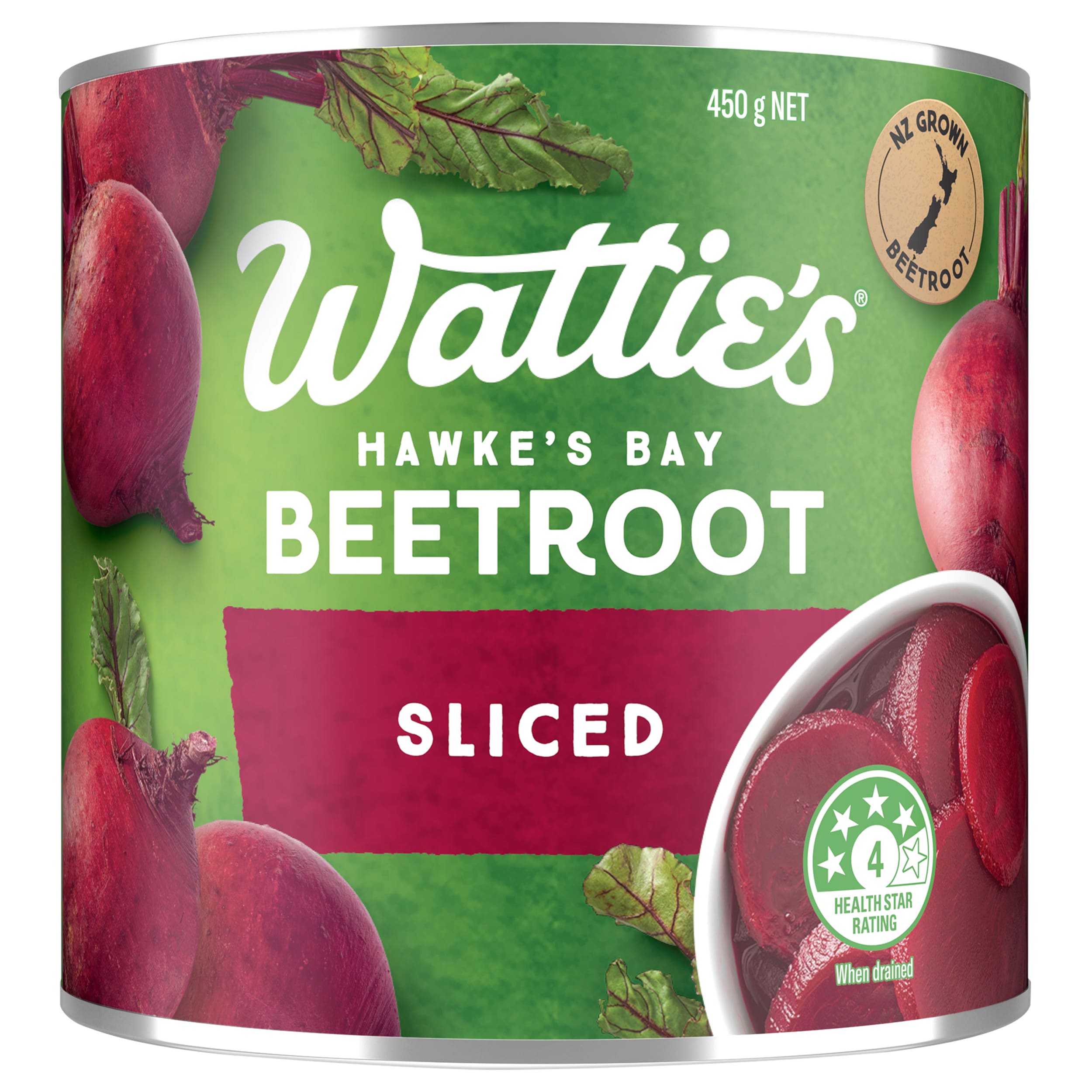 Wattie's® Beetroot has long been a Kiwi favourite, grown with pride in the rich soil of the Hawke’s Bay and harvested at their peak. Wattie's® Beetroot Sliced is the Pick of the Crop™, designed to be enjoyed at any time of the year. These beetroot slices contain no added colours or flavours and no preservatives, so you can enjoy the true taste of NZ grown beetroot. Add to your burgers and sandwiches, blend into dips and soups or enjoy in a fresh summer salad with feta and walnuts. • No preservatives • No added colours or flavours • 2.5 serves of vegetables per can (One serve of vegetables equals 80g. Aim for a variety of vegetables each day.) • Packed in a recyclable can • NZ grown beetroot