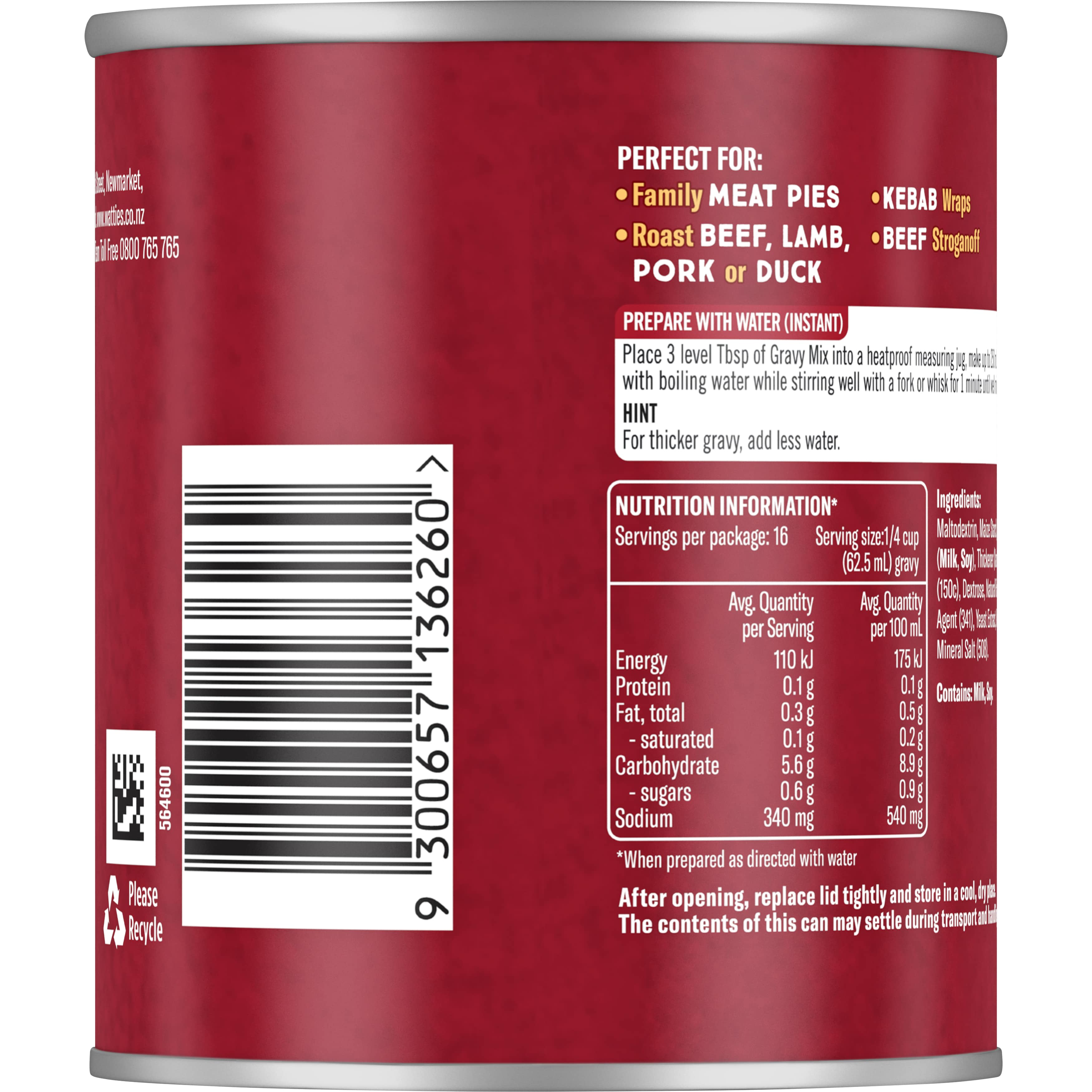 Wattie's® Traditional Gravy is made to enhance a variety of family meals, from meat pies to roast dinners and kebab wraps. Smooth in texture with a...