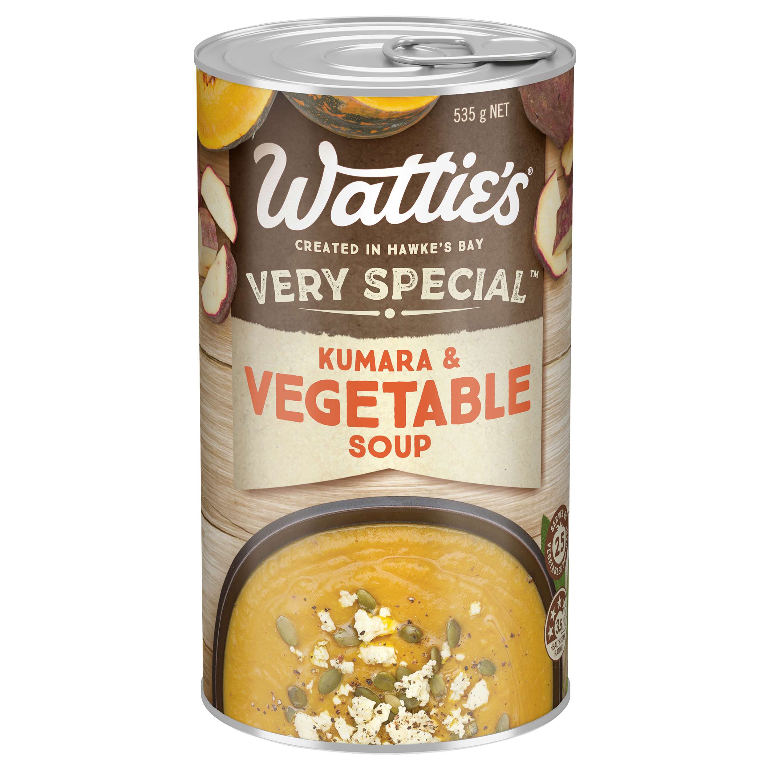A delicious blend of kumara, vegetables, cream and spices. Wattie's® Very Special™ Kumara & Vegetable Soup is great served with crumbled feta and...