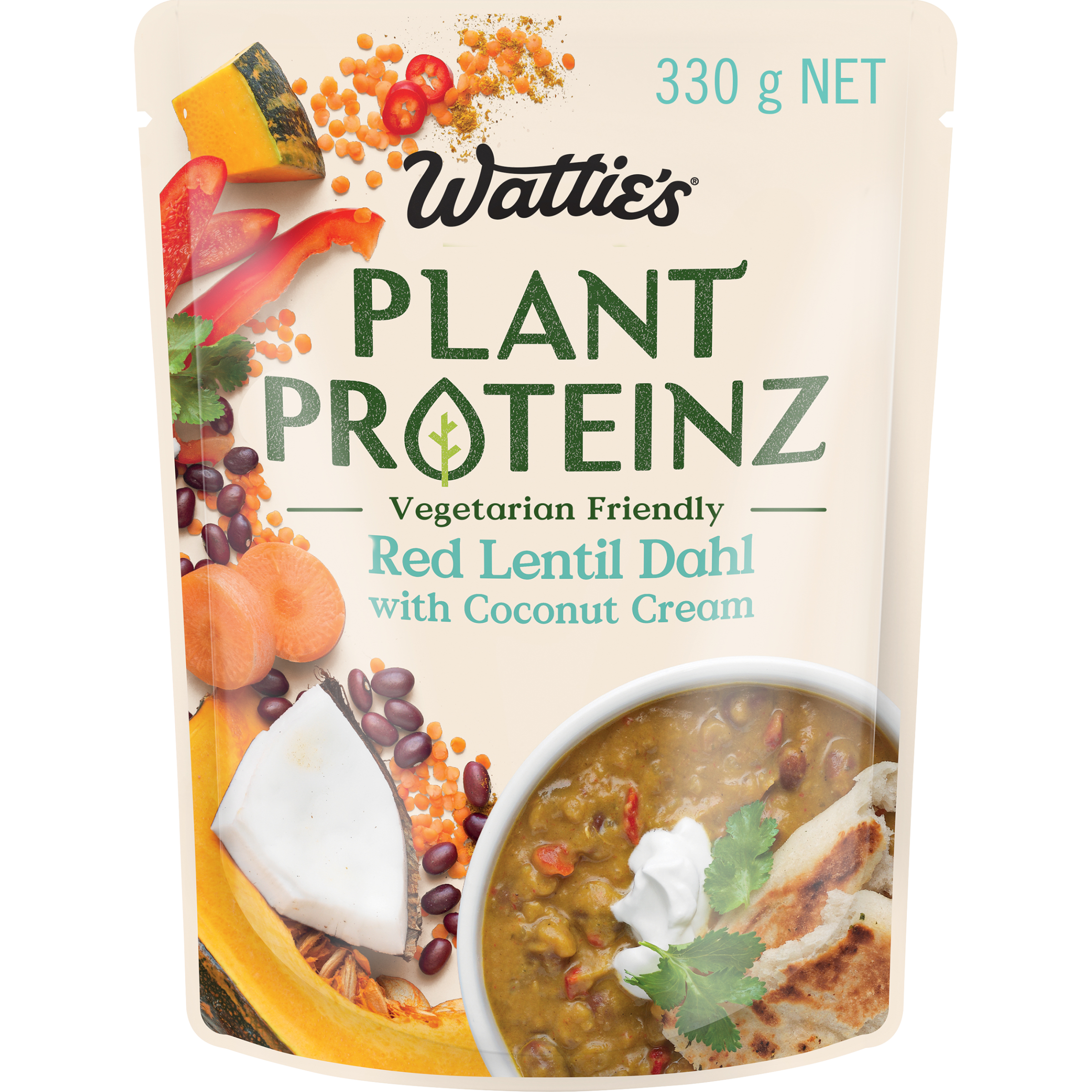 A delicious meal perfect for meat-free Mondays. Wattie's® Plant Proteinz Red Lentil Dahl with Coconut Cream has 15g of plant protein per serve. Made with coconut cream and vegetables, Wattie's® Plant Proteinz Red Lentil Dahl with Coconut Cream is a great mid-week meal. Simply heat on the stovetop or in a microwaveable container and serve with flatbread and a dollop of coconut yoghurt. Wattie's® Plant Proteinz Red Lentil Dahl with Coconut Cream contains no artificial colours or flavours, no preservatives and is an excellent source of dietary fibre. • 15g of Plant Protein per serve • No Artificial Colours or Flavours • No Preservatives • Excellent source of dietary fibre • Vegetarian Friendly