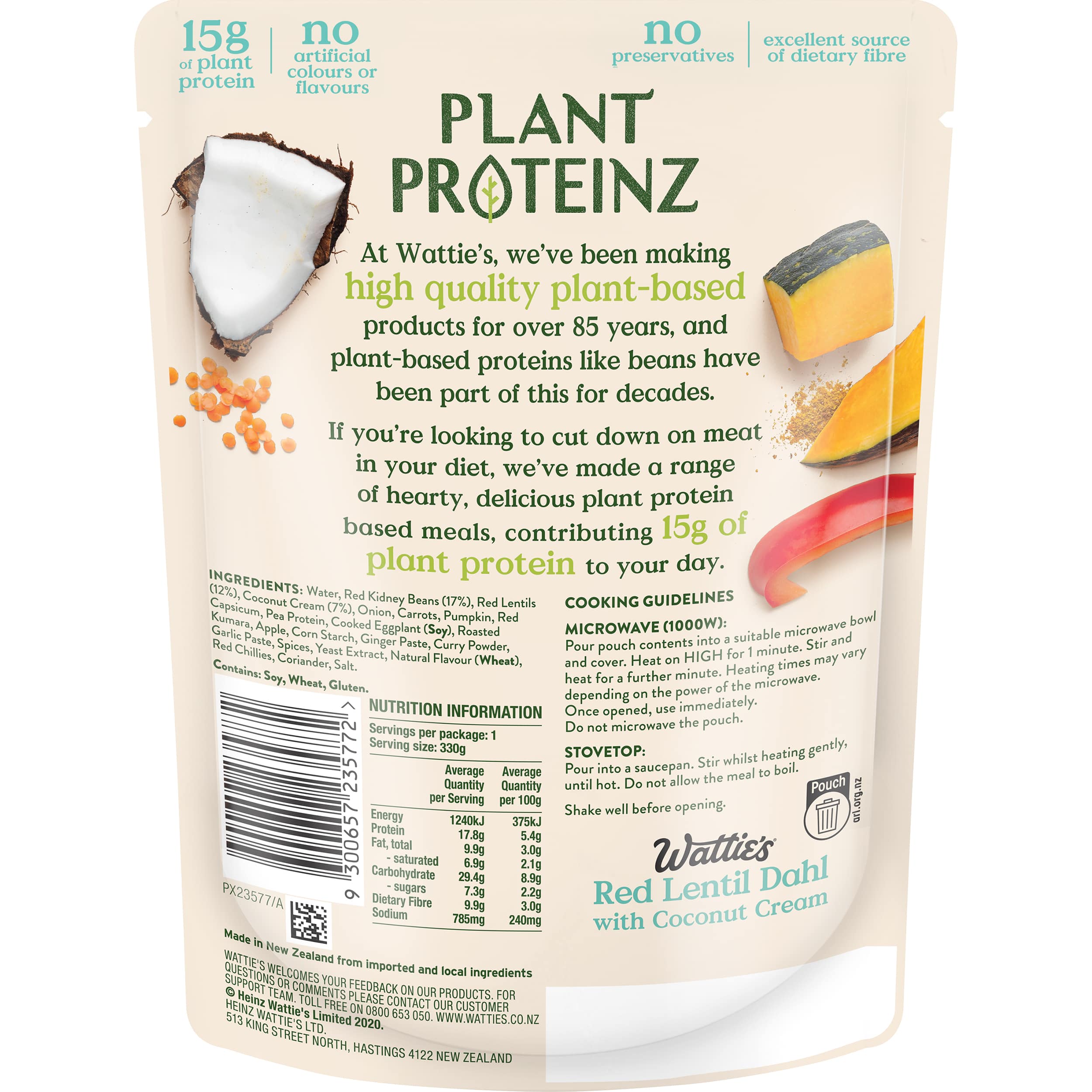 A delicious meal perfect for meat-free Mondays. Wattie's® Plant Proteinz Red Lentil Dahl with Coconut Cream has 15g of plant protein per serve. Made...