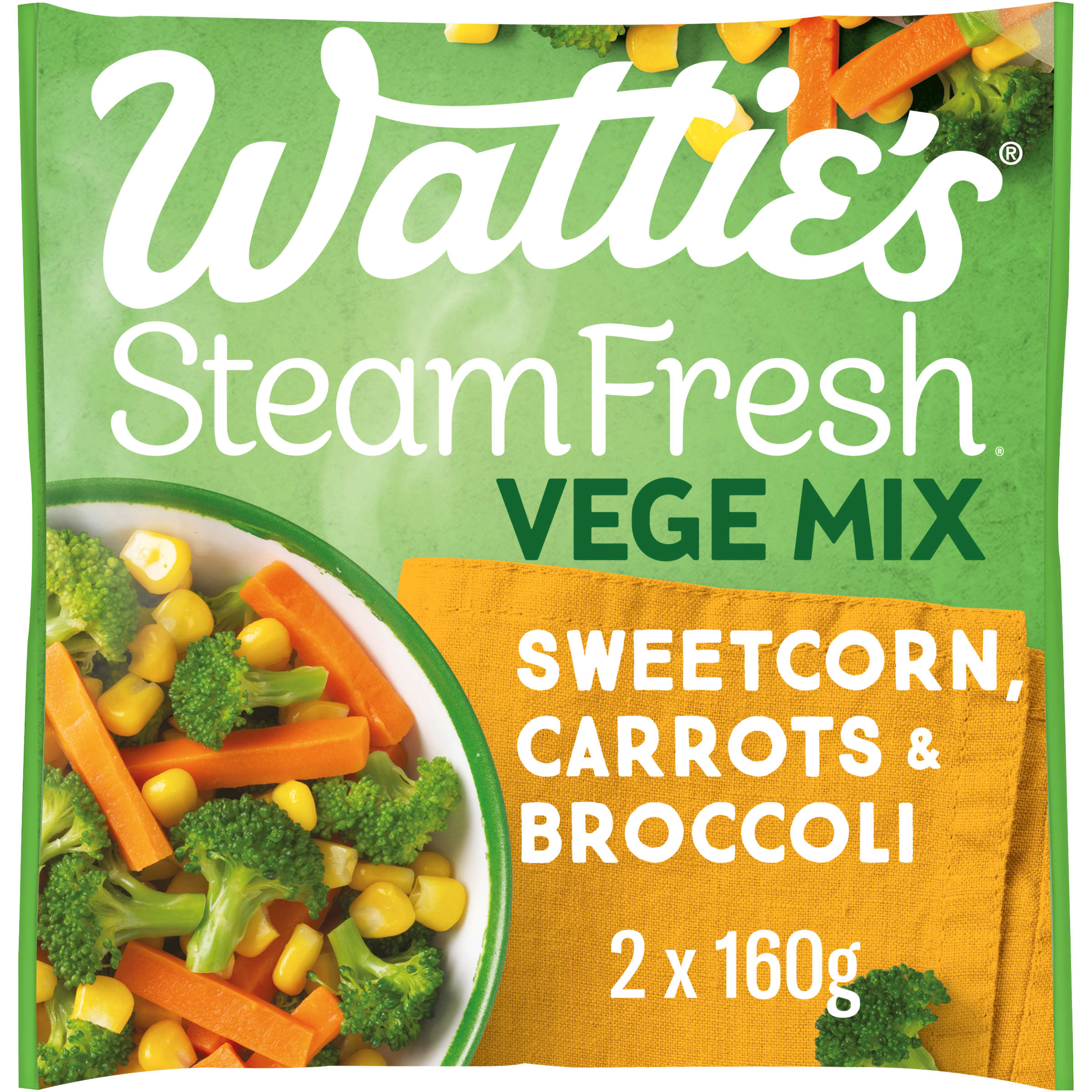Wattie's® SteamFresh® Sweetcorn, Carrots & Broccoli Steam Bags 2x160g