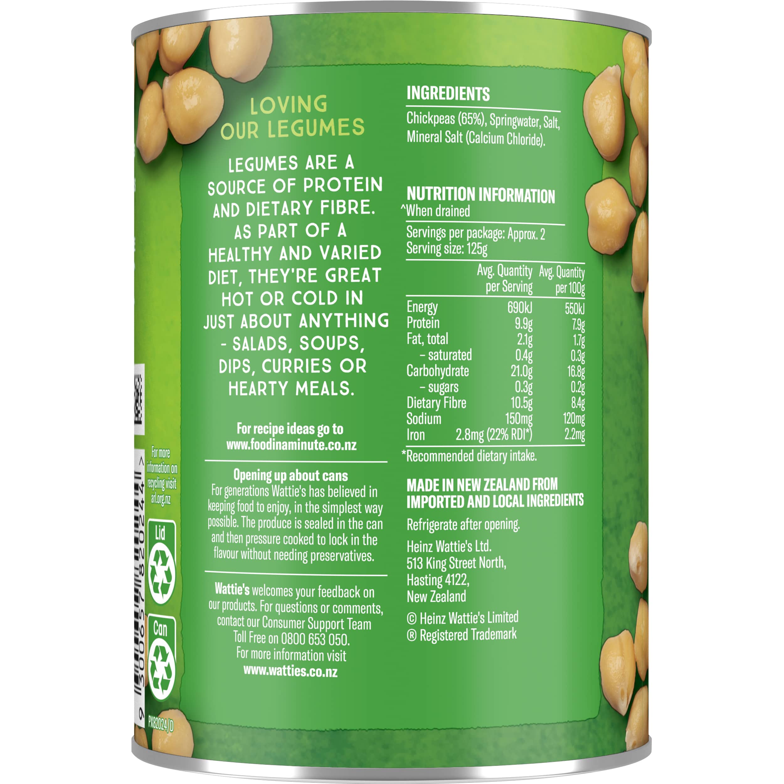 Wattie's® Chickpeas in Springwater are a great addition to salads, soups, curries and stews. A great meat alternative for all your favourite meals....