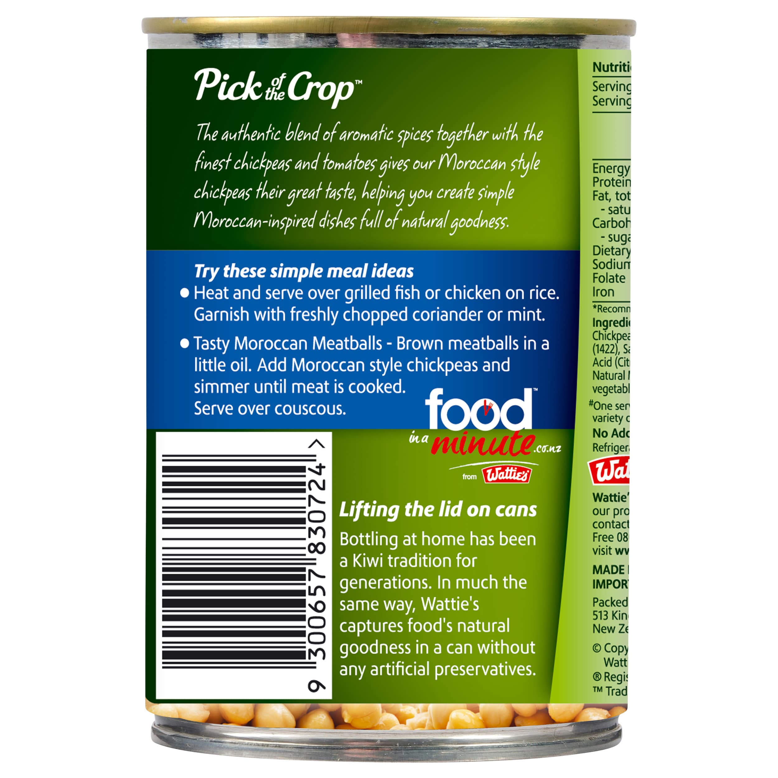 Wattie's® Moroccan Style Chickpeas are made with an authentic blend of aromatic spices along with chickpeas and tomatoes. These chickpeas provide a...