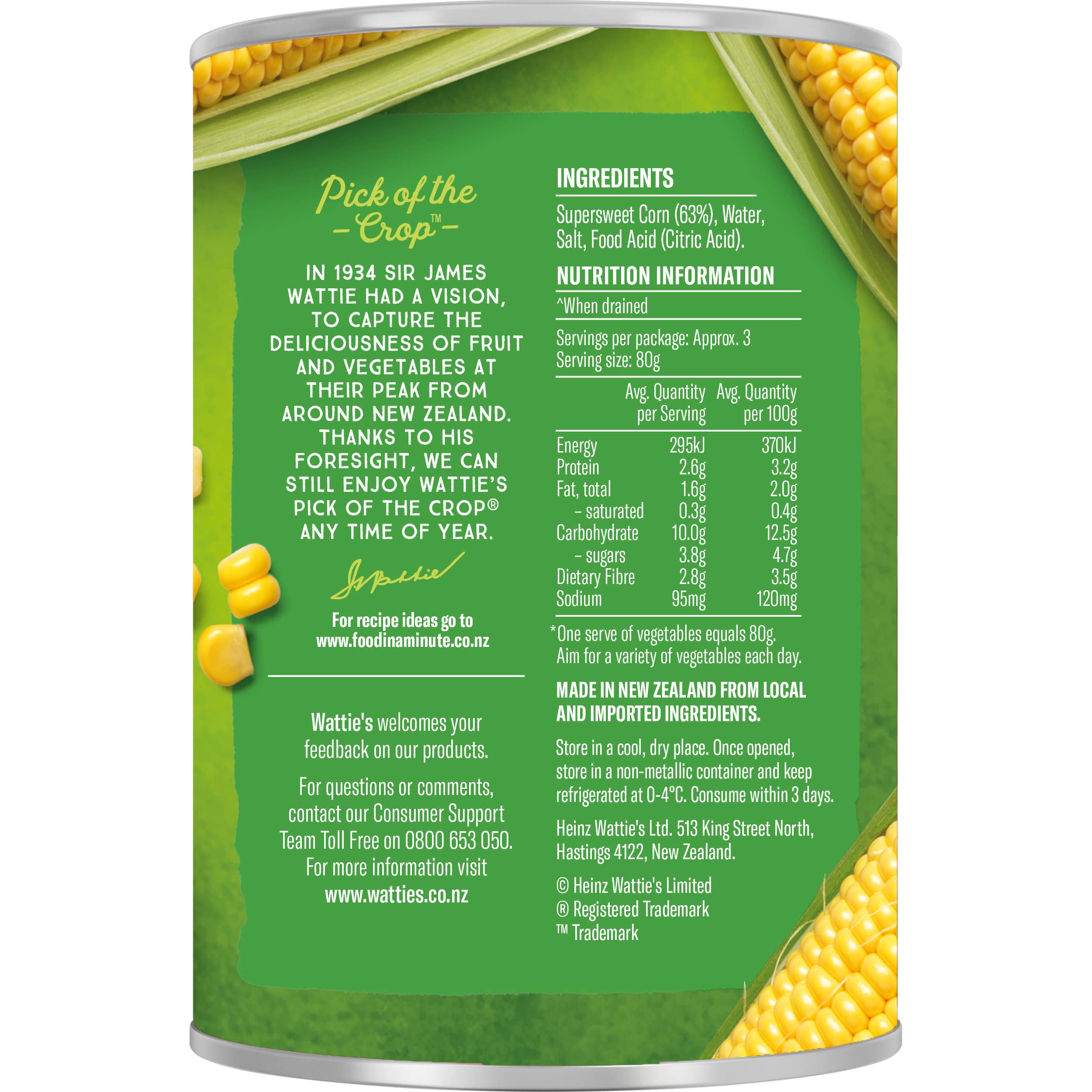 Wattie's Pick of the Crop® corn kernels grown in Hawke's Bay. Wattie’s® Corn Whole Kernel is a versatile pantry ingredient for pies, salads, tacos and...