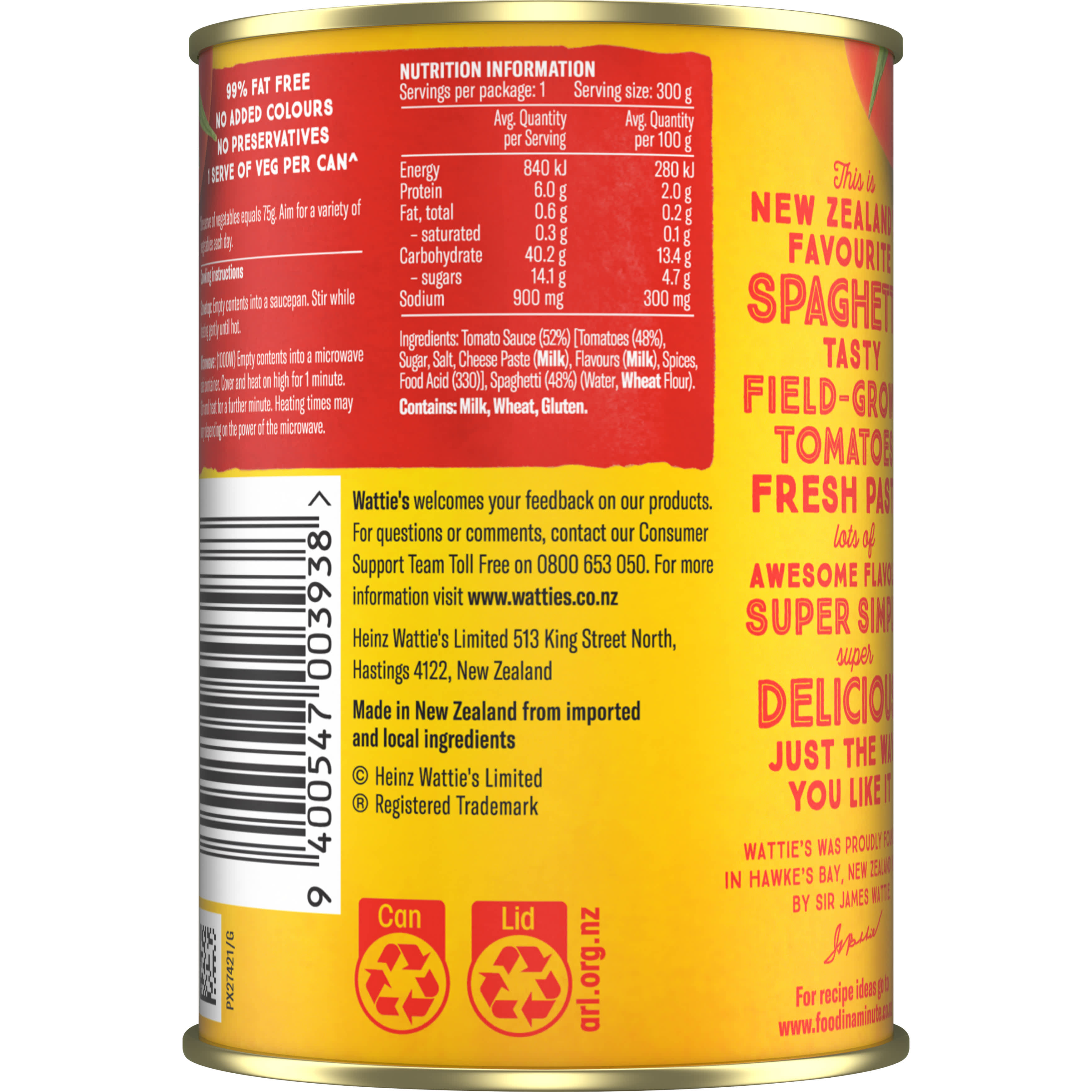 New Zealand's favourite spaghetti is Wattie's®. Made with field-grown tomatoes and fresh pasta, you can't beat the great taste of Wattie’s® Spaghetti...