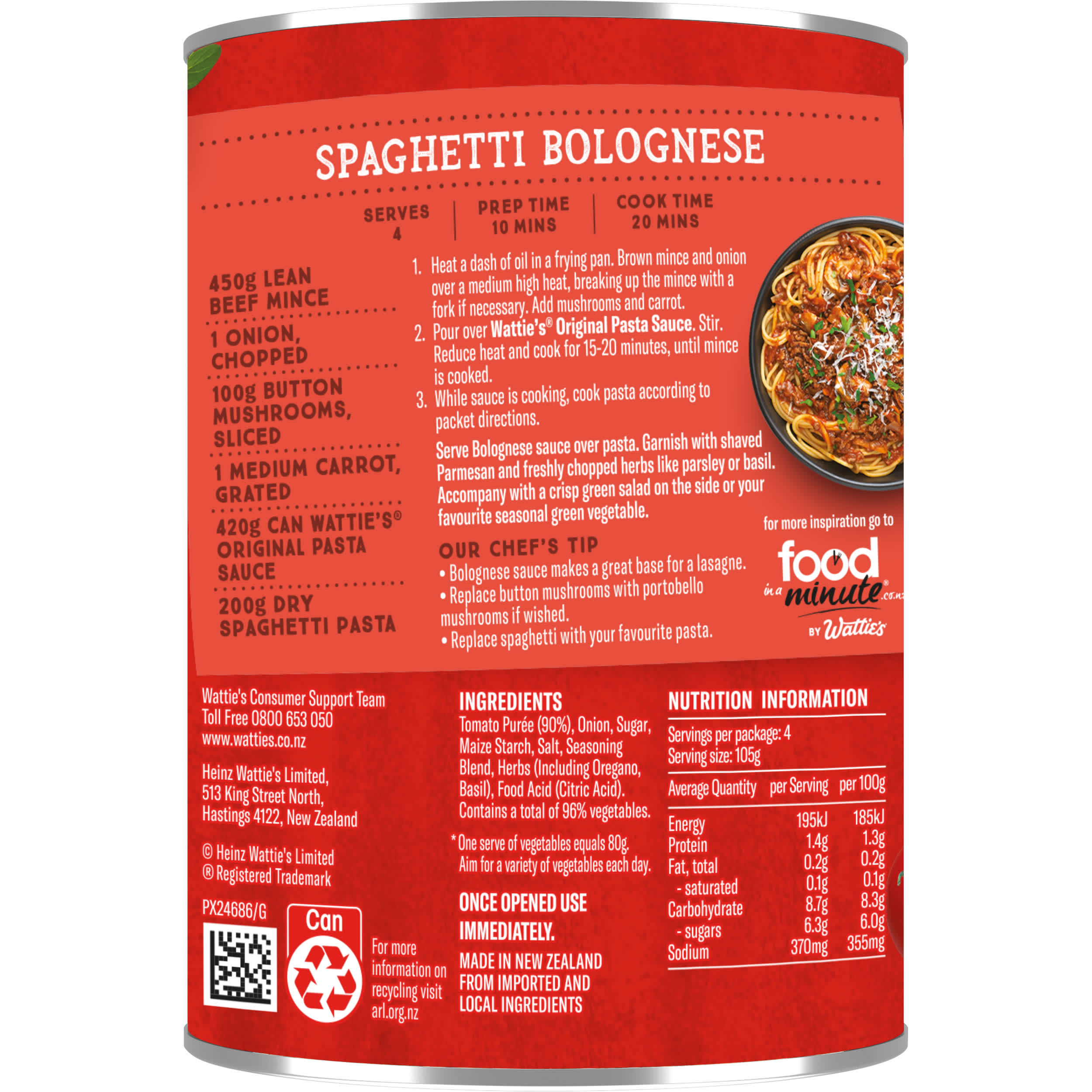 The perfect base to a variety of Italian dishes, Wattie's® Original Pasta Sauce contains 5 serves of veges per can (One serve of vegetables equals...