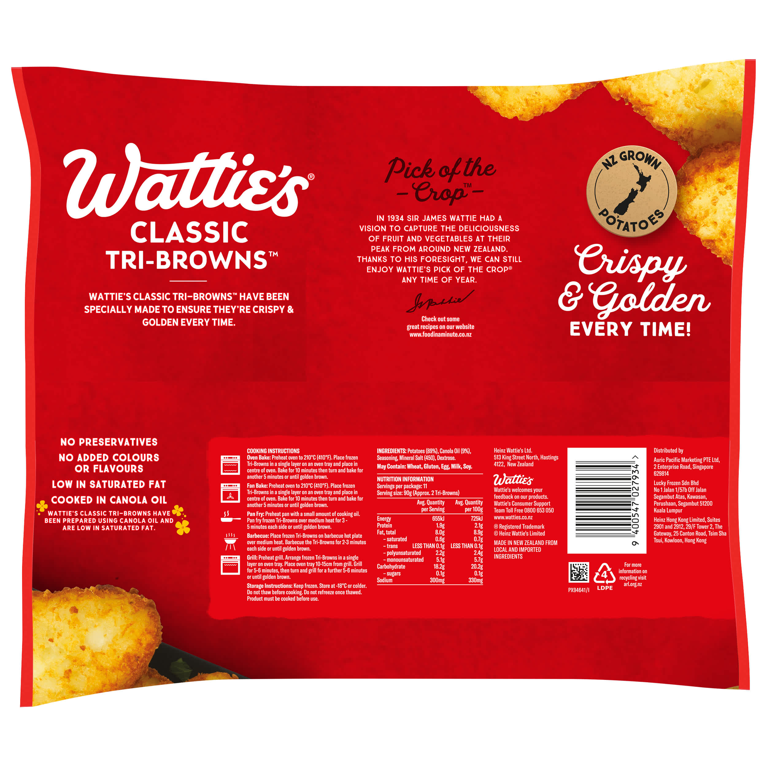 Wattie’s® Classic Tri-Browns™ have been specially made to ensure they are golden and crispy every time. Cooked in canola oil, these triangular hash...