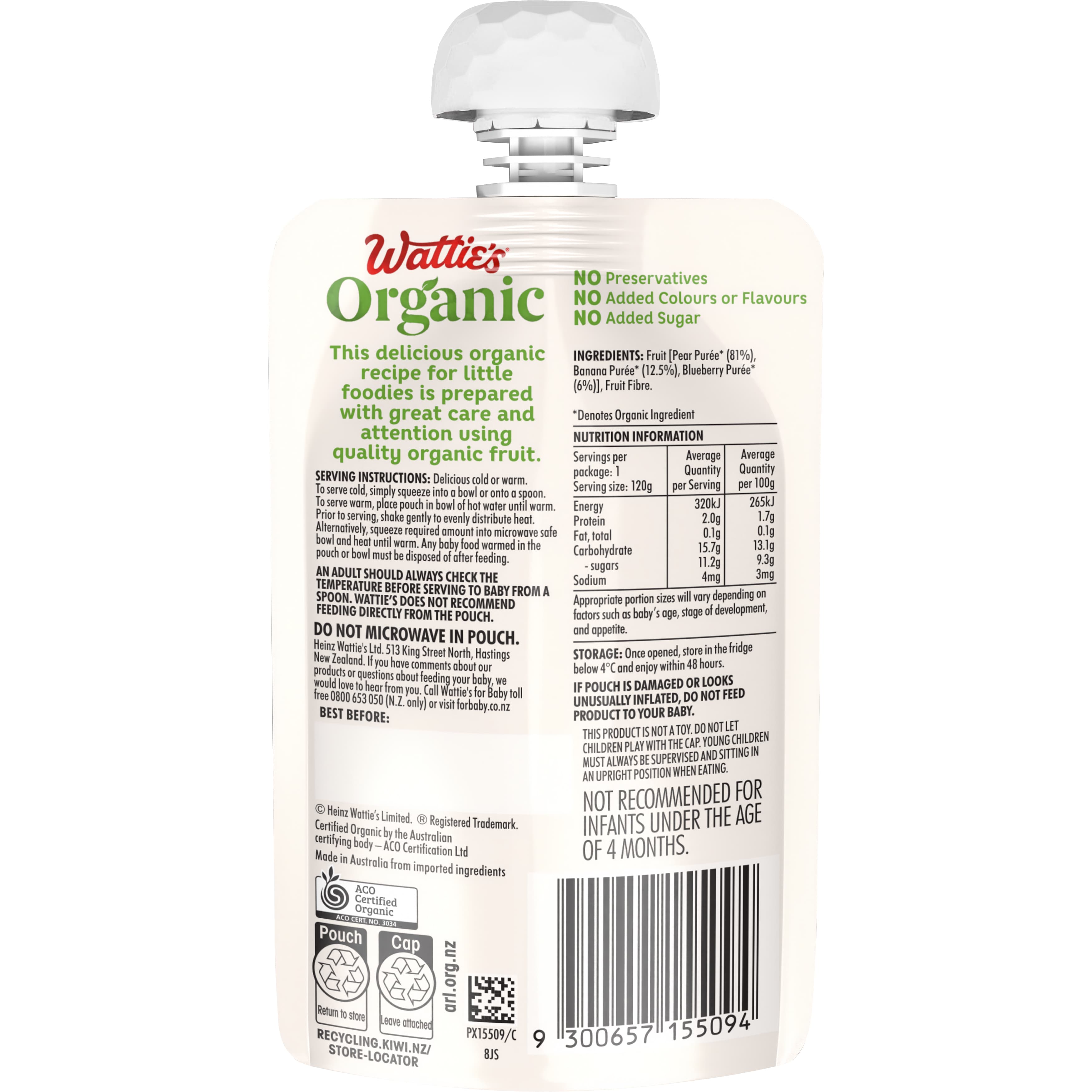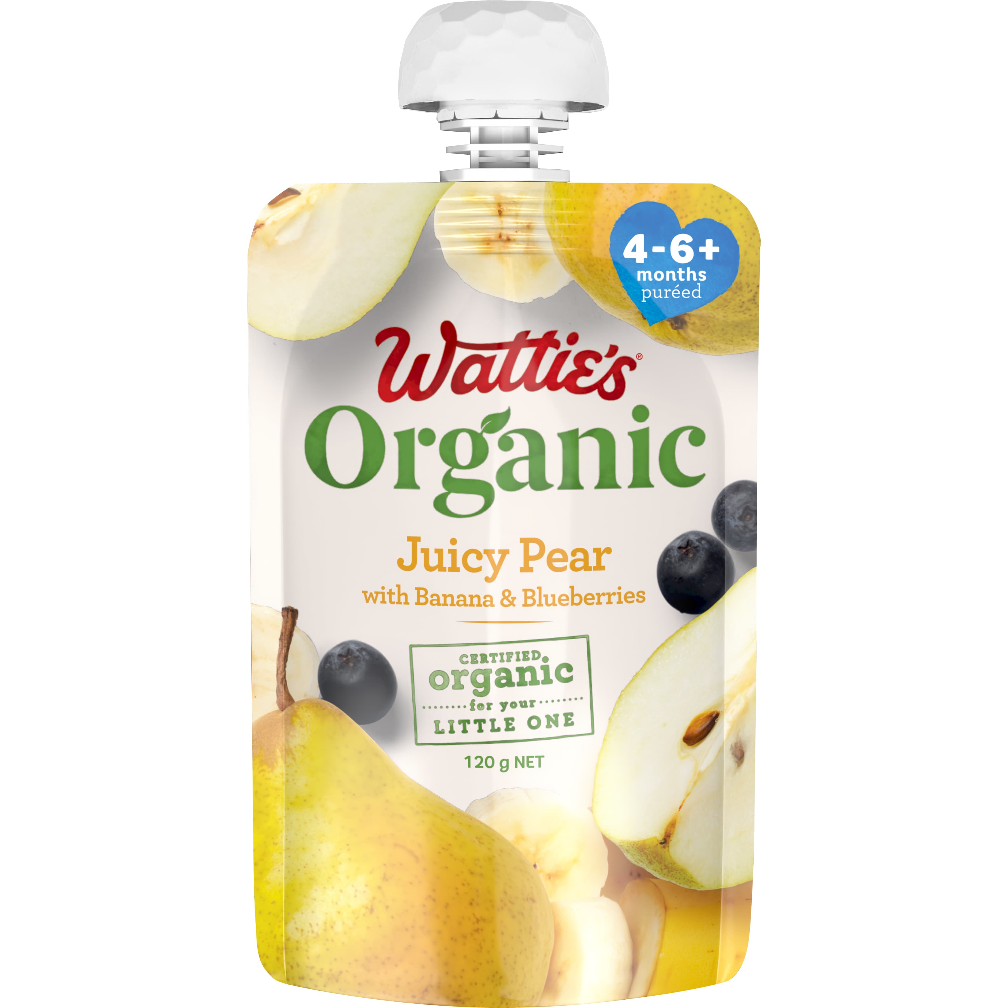 Wattie's® Organic Juicy Pear with Banana & Blueberries 4-6+ months 120 g