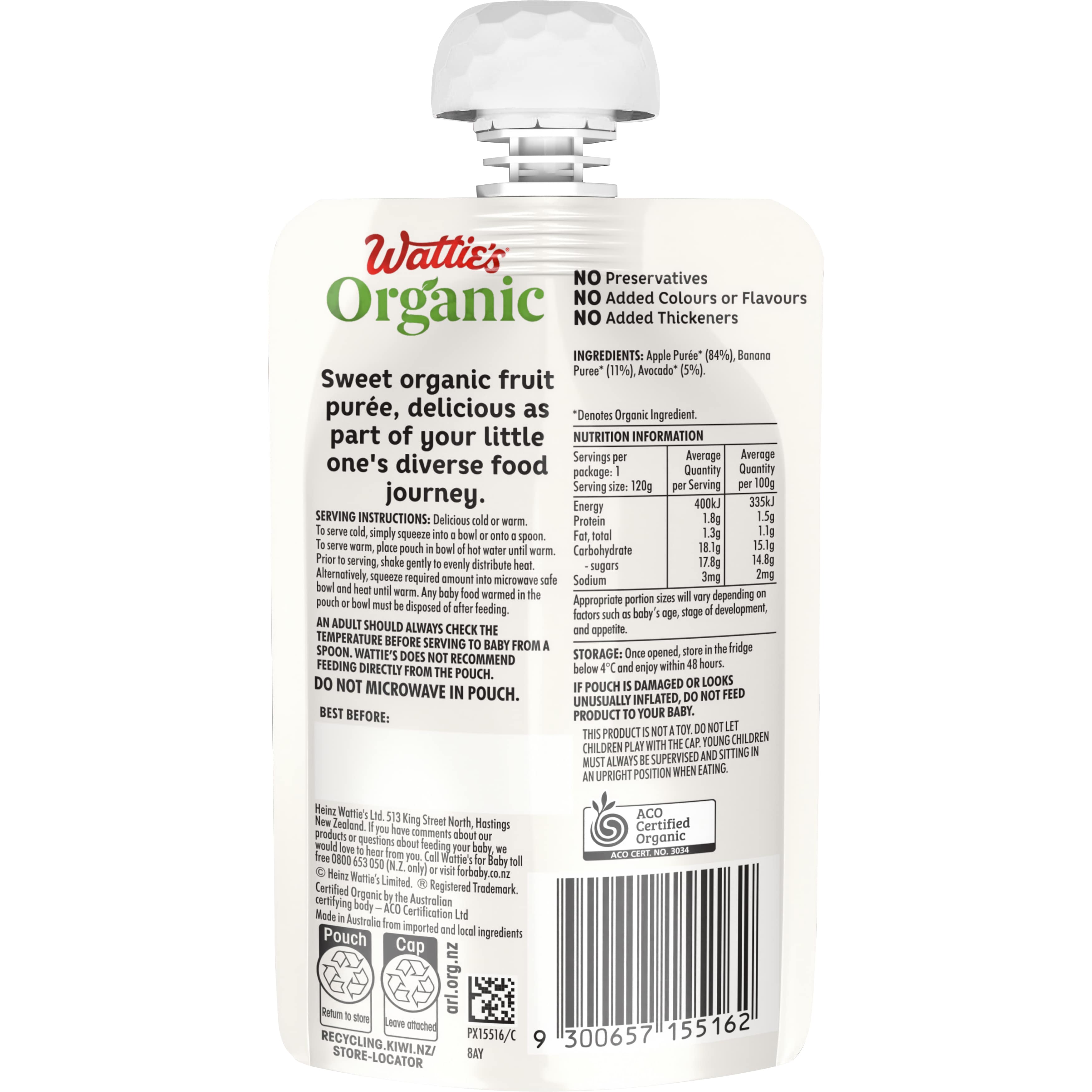 Wattie's® Organic Apple, Banana Avocado 6+ months 120 g