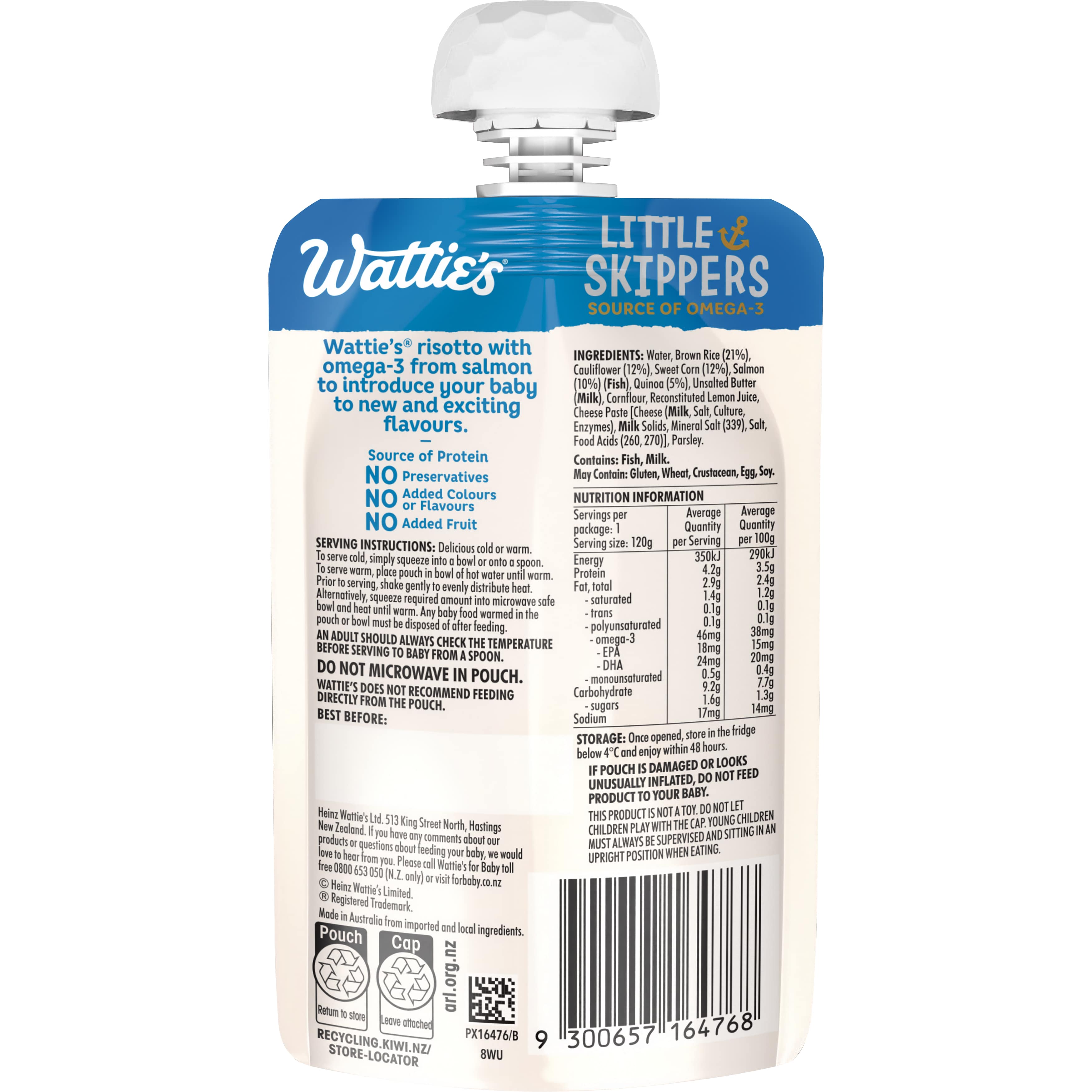 Introduce your baby to new and exciting flavours with Wattie's® Little Skippers Cauliflower & Salmon Risotto . It has a mashed texture suitable for...